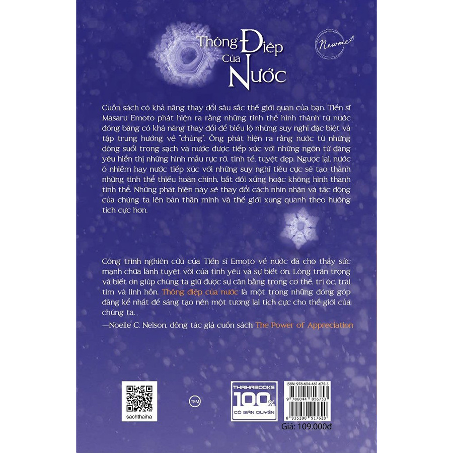 Cuốn sách là quá trình tiến hành nghiên cứu, đo lường dao động sóng trong nước, tìm hiểu về những tinh thể và tác giả đã khám phá ra rằng nước tự thể hiện nó theo muôn vàn cách khác nhau. Qua những bức ảnh chụp các tinh thể bổ sung cho thấy rất nhiều điều kỳ thú. Trái ngược với nước máy, nước tự nhiên hiển thị ra một chuỗi những tinh thể tuyệt đẹp, các tinh thể này còn tuyệt vời hơn khi tiếp xúc với những bản nhạc hay hoặc thể hiện của chúng khi tiếp cận với các từ như “cám ơn”, “đồ ngốc”. Những tinh thể chứa đựng nhiều bài học liên quan đến cách mà chúng ta nên – và PHẢI – sống cuộc đời mình.