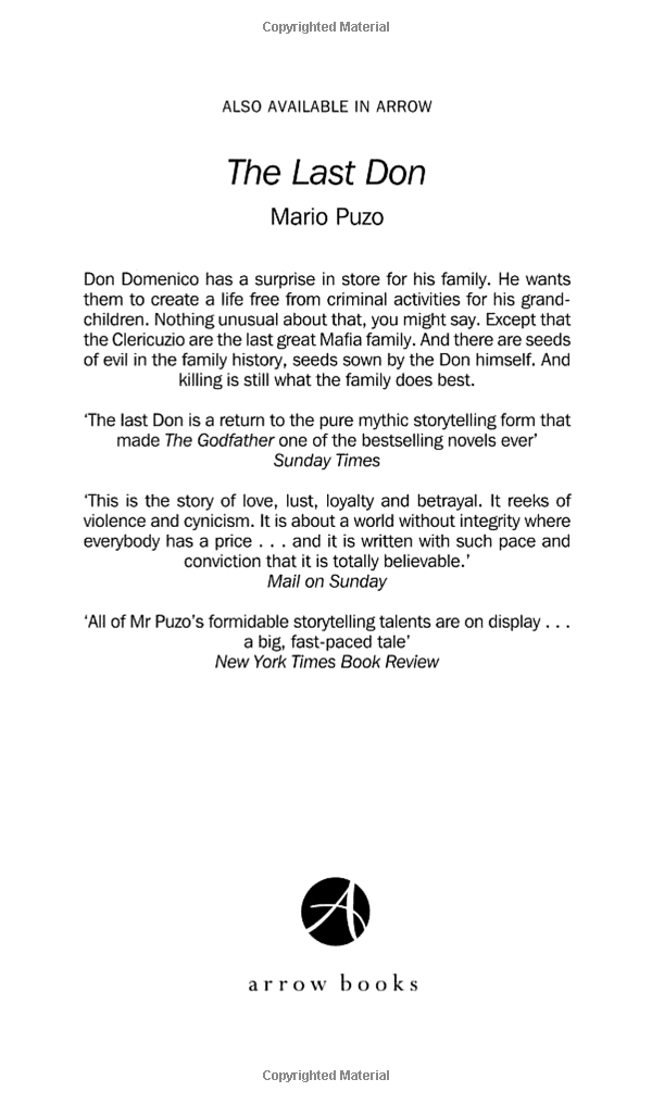 A modern masterpiece,The Godfather is a searing portrayal of the 1940s criminal underworld. It is also the intimate story of the Corleone family, at once drawn together and ripped apart by its unique position at the core of the American Mafia. Still shocking forty years after it was first published, this compelling tale of blackmail, murder and family values is a true classic.
