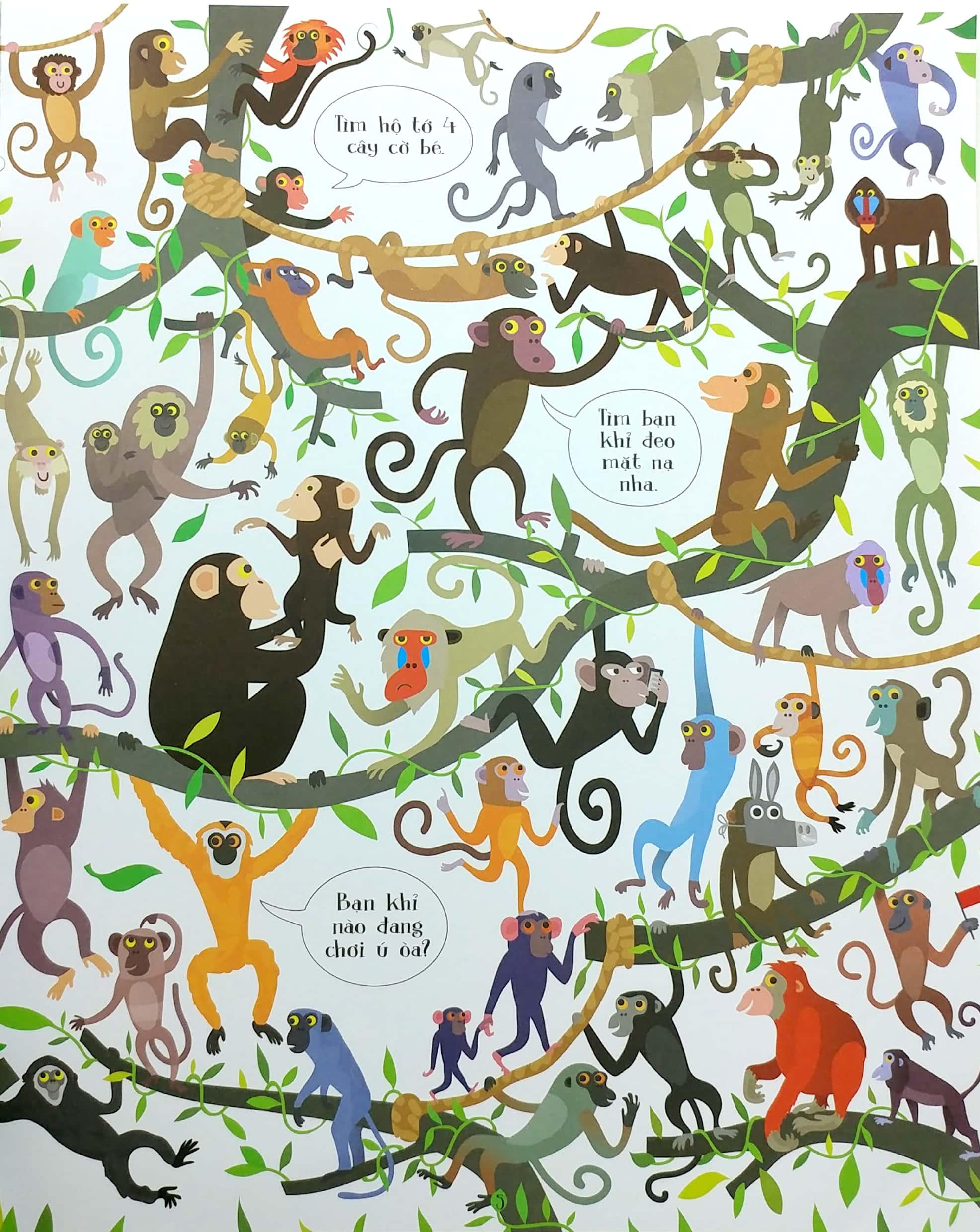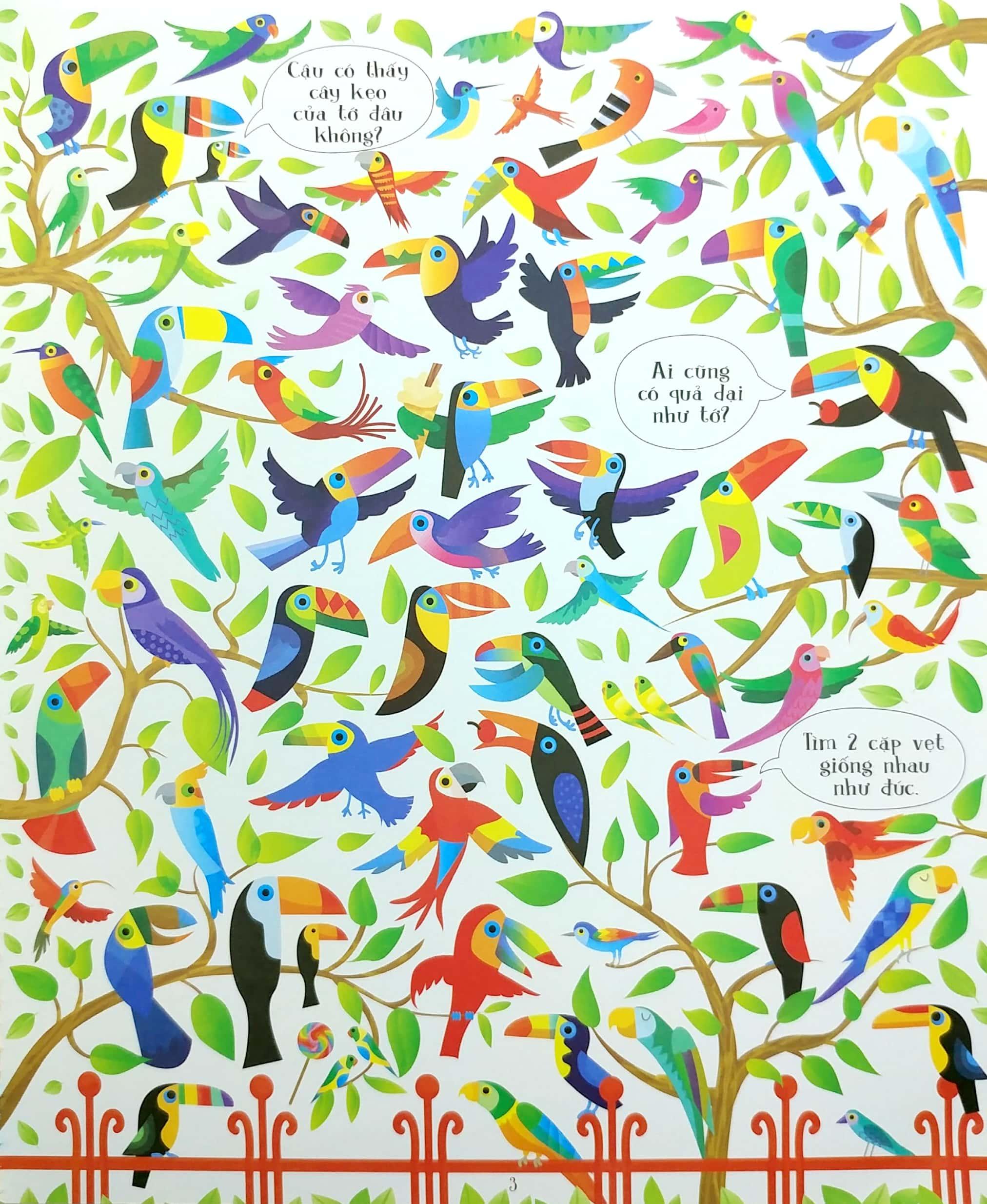 Mỗi trang trong cuốn sách tranh tuyệt đẹp này đầy hình ảnh những động vật cho các bạn nhỏ tha hồ tìm kiếm, ghép hình giống nhau và tập đếm, cùng hàng trăm tình huống thú vị và nhân vật ngộ nghĩnh cho các bạn ấy mày mò.Giá sản phẩm trên Tiki đã bao gồm thuế theo luật hiện hành. Bên cạnh đó, tuỳ vào loại sản phẩm, hình thức và địa chỉ giao hàng mà có thể phát sinh thêm chi phí khác như phí vận chuyển, phụ phí hàng cồng kềnh, thuế nhập khẩu (đối với đơn hàng giao từ nước ngoài có giá trị trên 1 triệu đồng).....