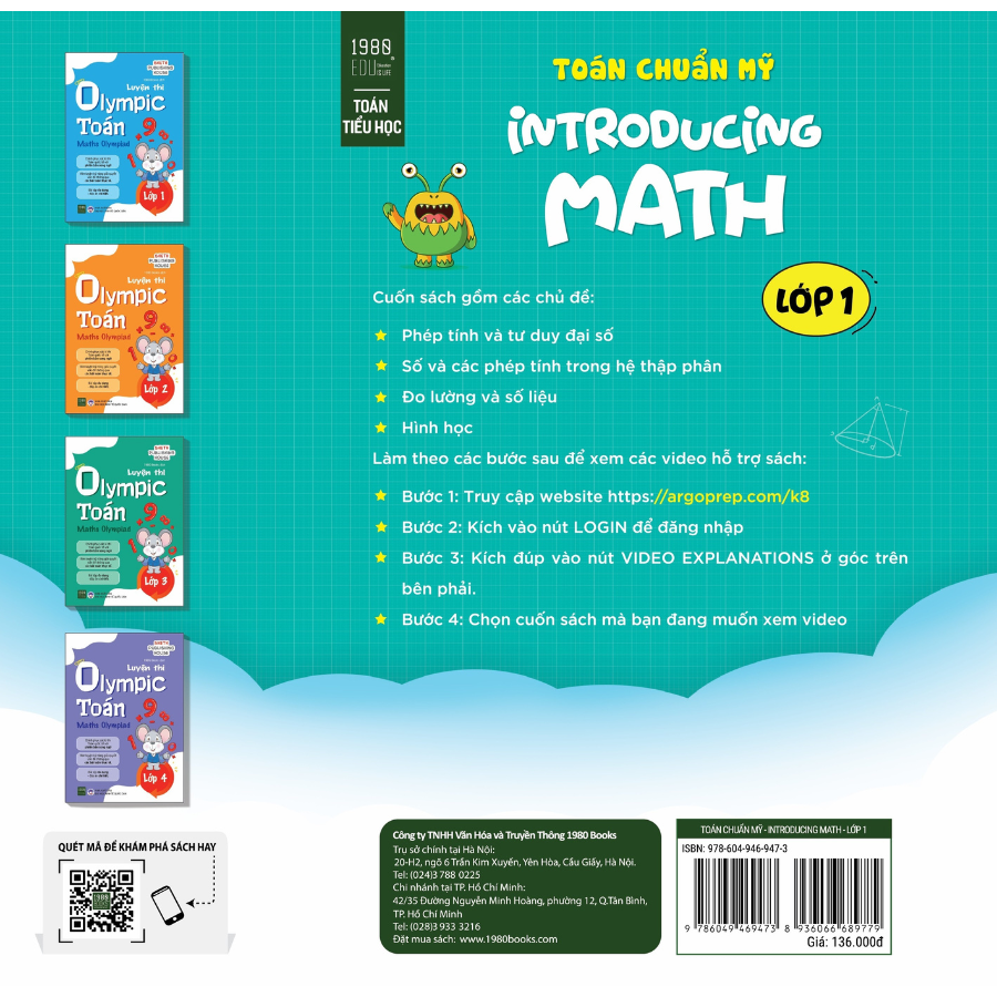 Bộ sách “Toán chuẩn Mỹ - Introducing Math” là bộ toán song ngữ giúp các em vừa có thể học toán một cách hiệu quả, lại vừa nâng cao được khả năng tiếng Anh của mình một cách hiệu quả nhất. Với phương pháp học khác biệt so với những bộ sách toán thông thường, bộ sách sẽ giúp học sinh rèn luyện khả năng tư duy logic một cách cụ thể và hoàn chỉnh. Đặc biệt với hình thức song ngữ các em có thể dễ dàng làm quen các dạng câu hỏi và cách thức làm từng dạng bài để tự cải thiện kỹ năng trong môn toán của bản thân.