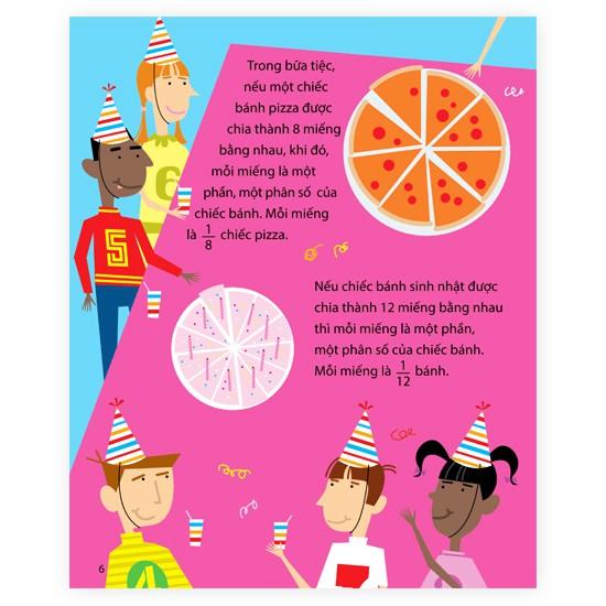 · Cuốn “Phân số - Không còn rắc rối”: Những khái niệm: phân số, tử số, mẫu số, rồi cộng, trừ phân số… tất cả đều được giải quyết vô cùng đơn giản bằng những chiếc bánh pizza.