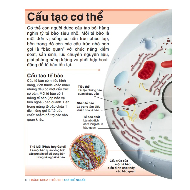 Cơ thể của chúng ta là một cỗ máy tuyệt vời chứa hơn 200 xương, hang triệu tế bào và thực hiện các chức năng phức tạp mà không cần sự điều khiển. Hãy cùng tìm hiểu tất cả những kiến thức về cơ thể con người những hành động của chúng ta diễn ra như thế nào, tại sao chúng ta cần thức ăn, và cả cách trái tim đập từng nhịp nhỏ - tất cả những kiến thức ấy chứa đựng trong cuốn bách khoa toàn thư cỡ nhỏ này.
