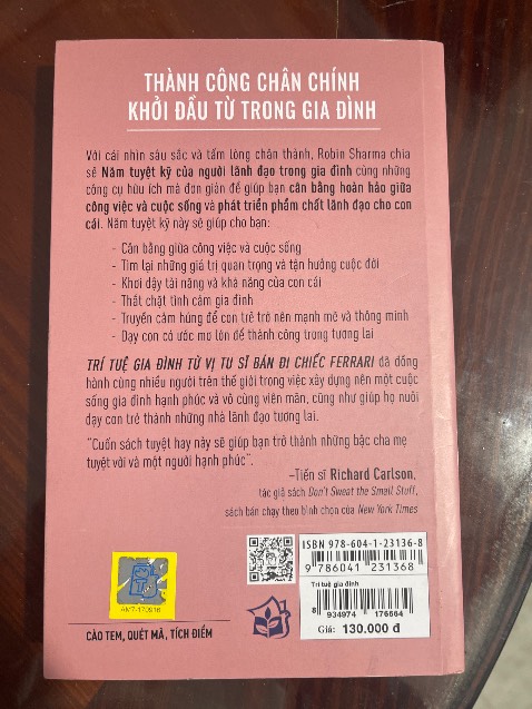 Thông số kỹ thuật Sách Trí Tuệ Gia Đình Từ Vị Tu Sĩ Bán Đi Chiếc Ferrari