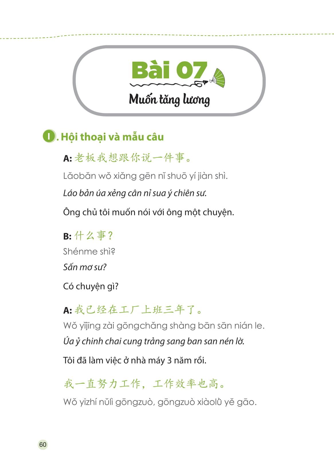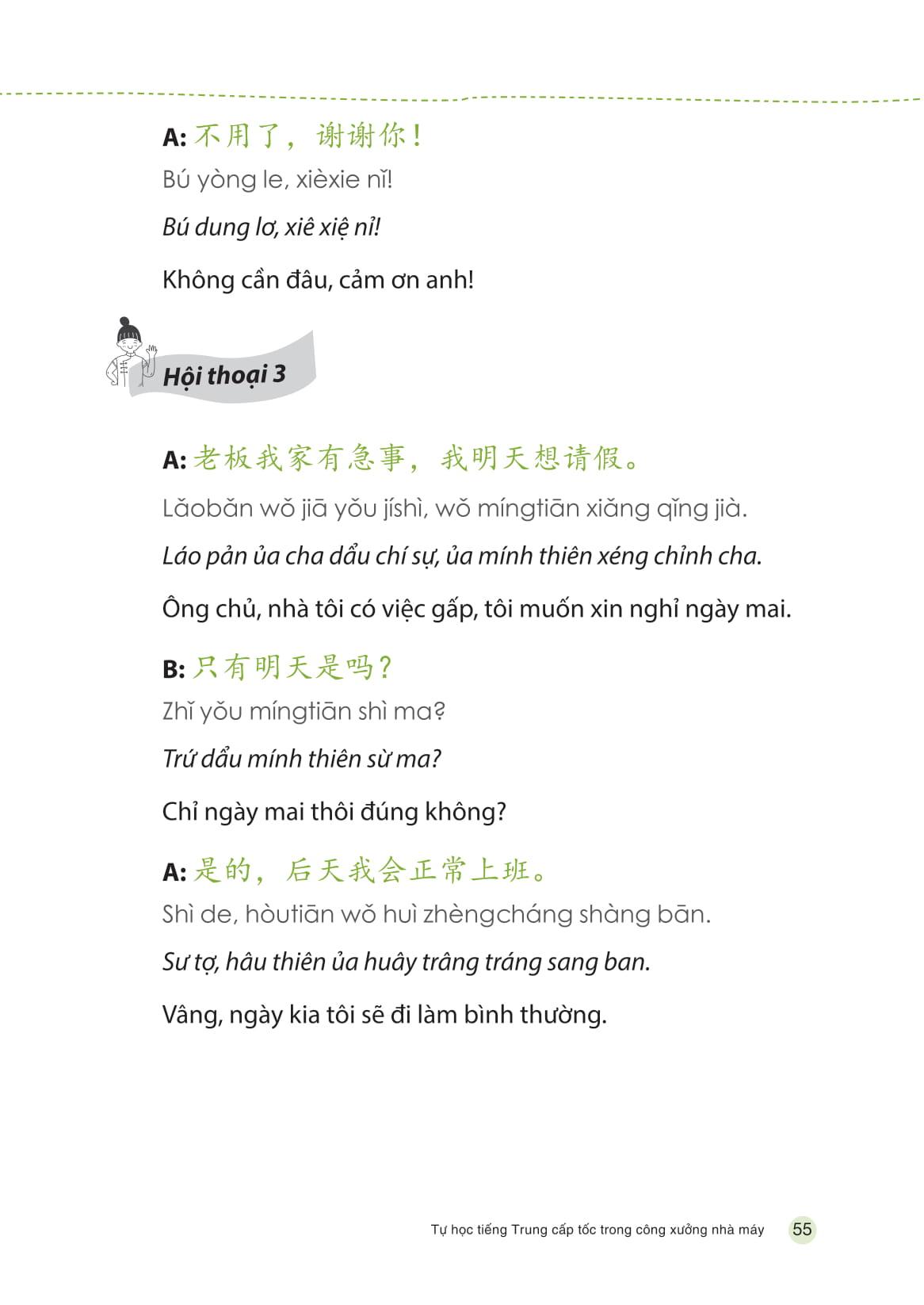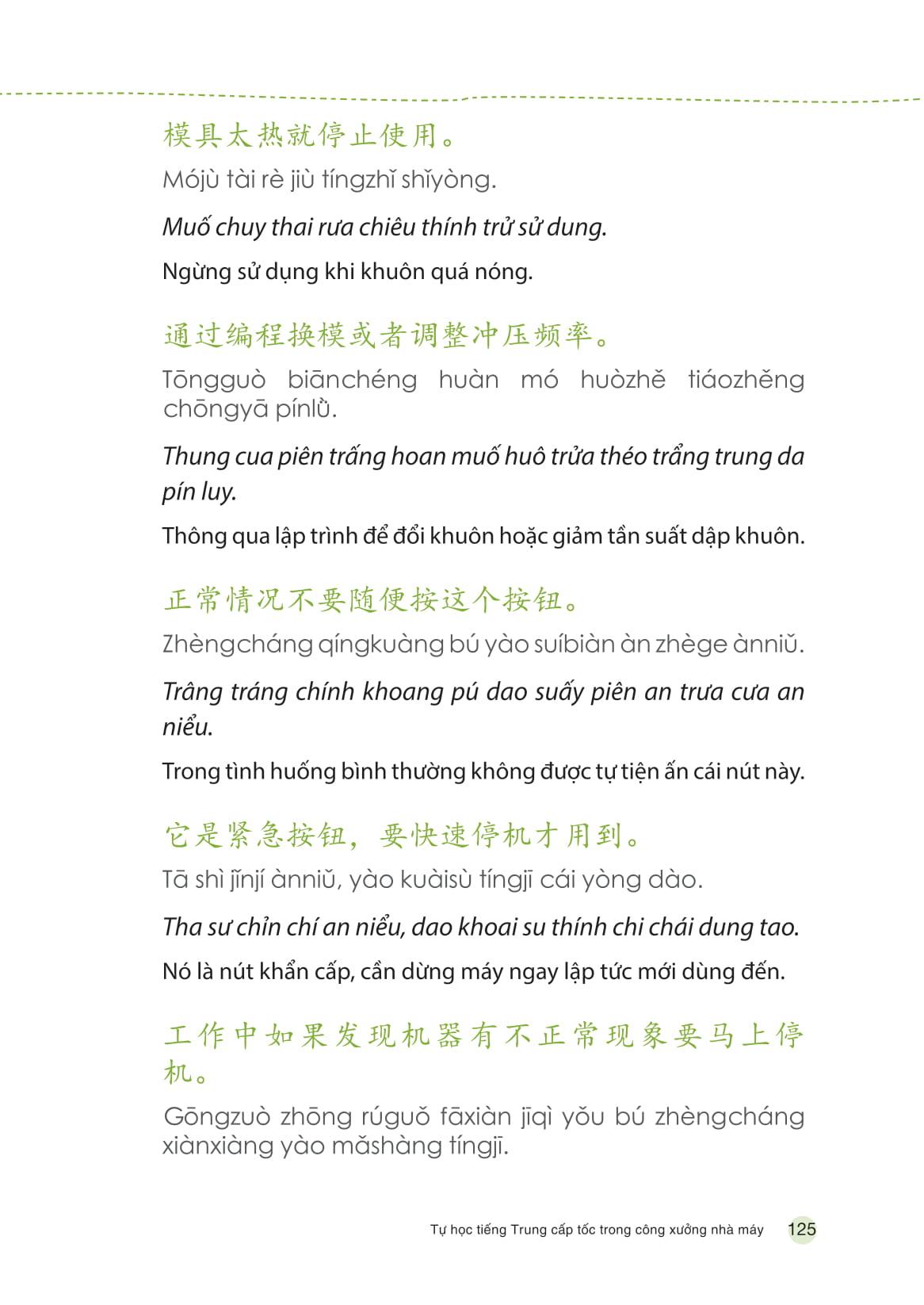 Cuốn sách “Tự học Tiếng Trung cấp tốc trong công xưởng, nhà máy” ra đời cũng vì mục đích đó. Với các chủ đề đa dạng, từ giao tiếp thông dụng tới giao tiếp theo chuyên ngành, cuốn sách sẽ phù hợp cho nhiều đối tượng khác nhau, đặc biệt là những người bận rộn muốn học tiếng Trung có trọng điểm, tiết kiệm thời gian và có thể ứng dụng ngay trong công việc.
