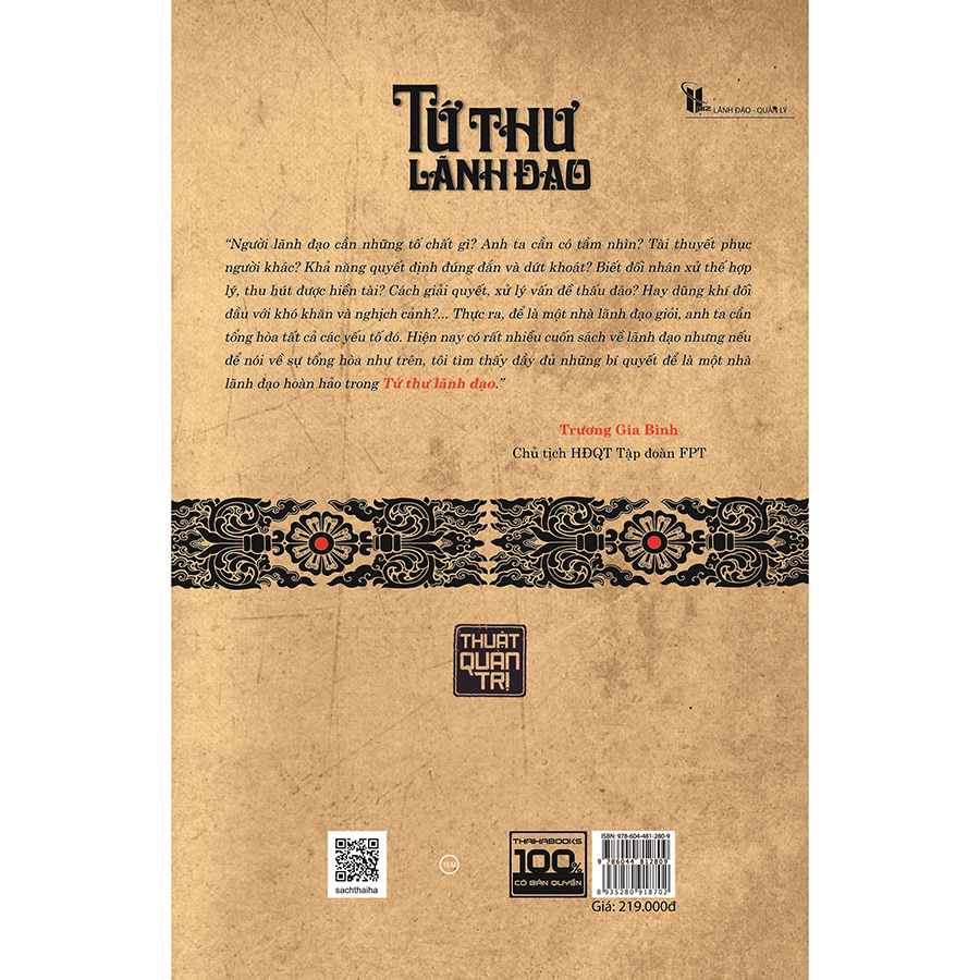Cá nhận bạn có tự tin vào tố chất lãnh đạo trong con người mình? Hãy cùng chúng tôi tìm hiểu sự ảnh hưởng tuyệt vời về khả năng chỉ huy người khác để phấn đấu qua bộ sách Tứ thư lãnh đạo. Bộ sách do Thaihabooks phát hành nhân dịp sinh nhật lần thứ 7 (22/06/2007 – 22/06/2014). Đây là bộ cẩm nang dành cho những nhà lãnh đạo, quản lí và dành cho những ai muốn trở thành lãnh đạo.