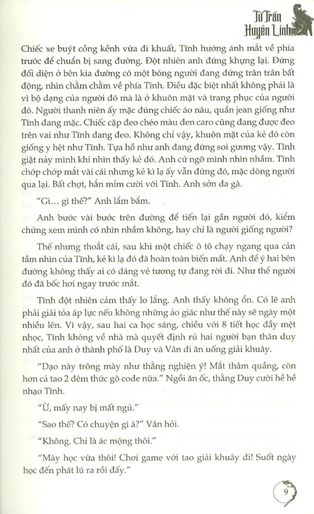 Đó cũng chính là tình huống éo le mà chàng nhân vật chính trong “Tứ trấn huyền linh” gặp phải. Tĩnh – chàng sinh viên trường Y với những ước mơ và hoài bão lớn về tương lai và sự nghiệp bỗng bị ám bởi lời nguyền từ kẻ nhị trùng, một bản sao y hệt của chính anh. Là một người tin vào khoa học, tin vào thực tế, thế nhưng trải qua biết bao sự kiện dị thường, ma mị, chính Tĩnh cũng phải thừa nhận về sự hiện diện của một thế giới tâm linh kì ảo và phải nương nhờ những thần linh ở các trấn Thăng Long để giúp hóa giải lời nguyền bí ẩn kia.