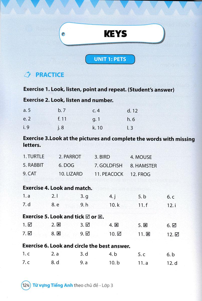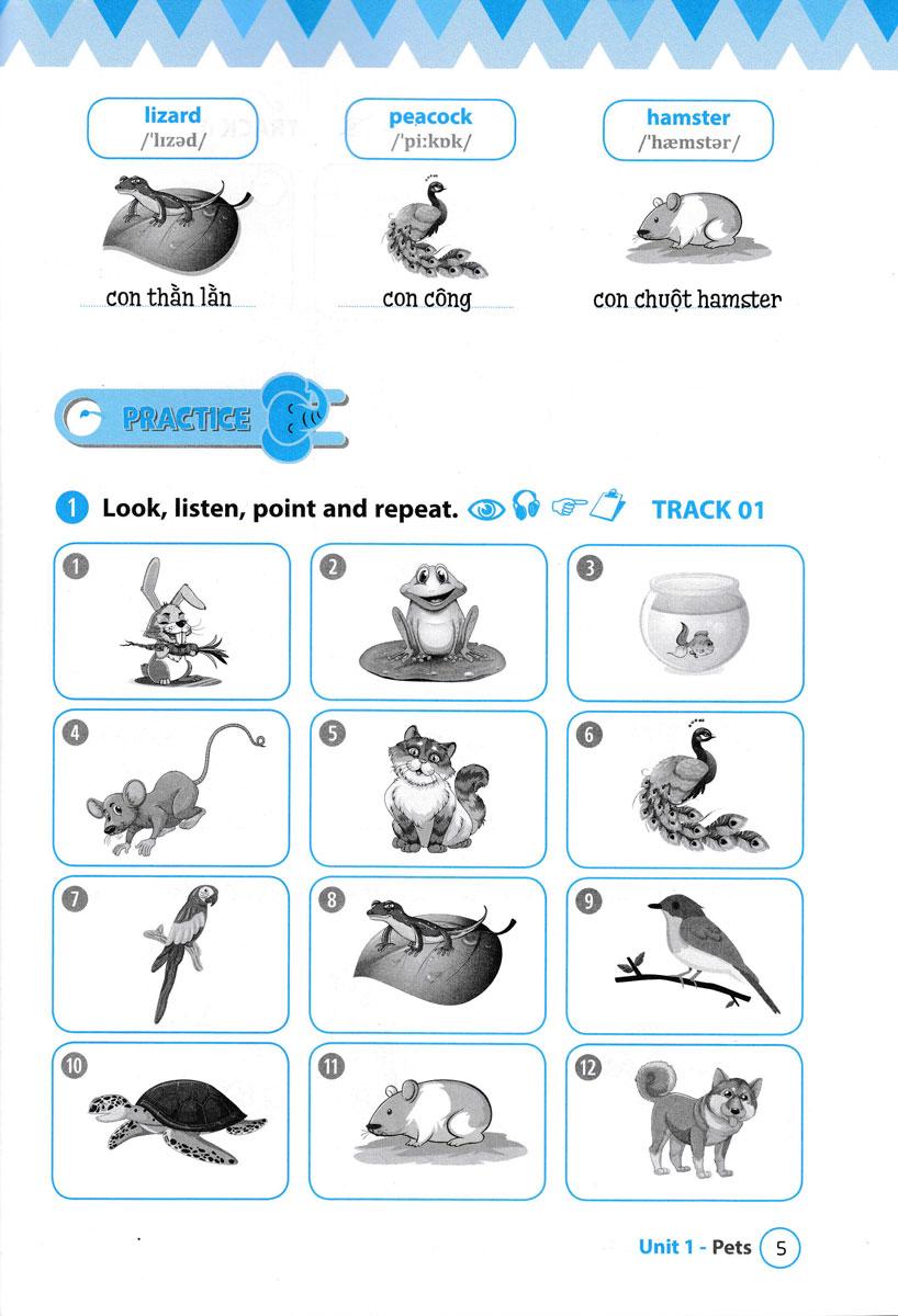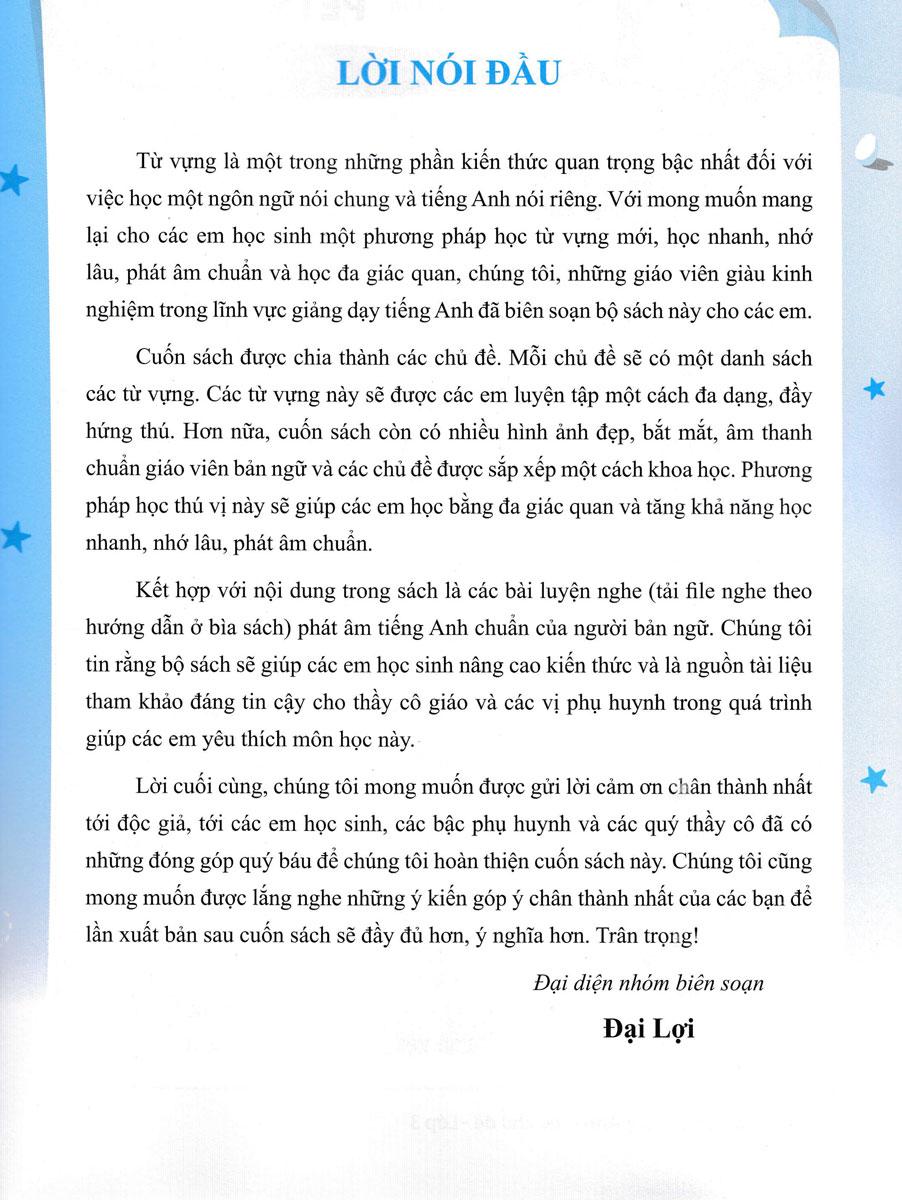 Cuốn sách được chia thành các chủ đề . Mỗi chủ đề sẽ có một danh sách các từ vựng . Các từ vựng này sẽ được các em luyện tập một cách đa dạng , đầy hứng thú . Hơn nữa , cuốn sách còn có nhiều hình ảnh đẹp , bắt mắt, âm thanh chuẩn giáo viên bản ngữ và các chủ đề được sắp xếp một cách khoa học. Phương pháp học thú vị này sẽ giúp các em học bằng đa giác quan và tăng khả năng học nhanh , nhớ lâu , phát âm chuẩn.