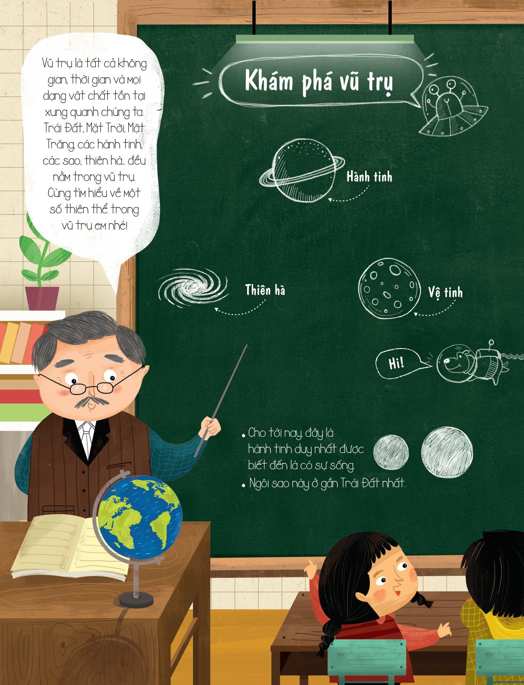 Đáp án nằm ngay trong những miếng ghép độc đáo của cuốn sách này! Em hãy MỞ cuốn sách này ra với LẬT những miếng ghép lên để tìm hiểu những kiến thức thú vị về vũ trị bao la và đầy bí ẩn của chúng ta nhé!