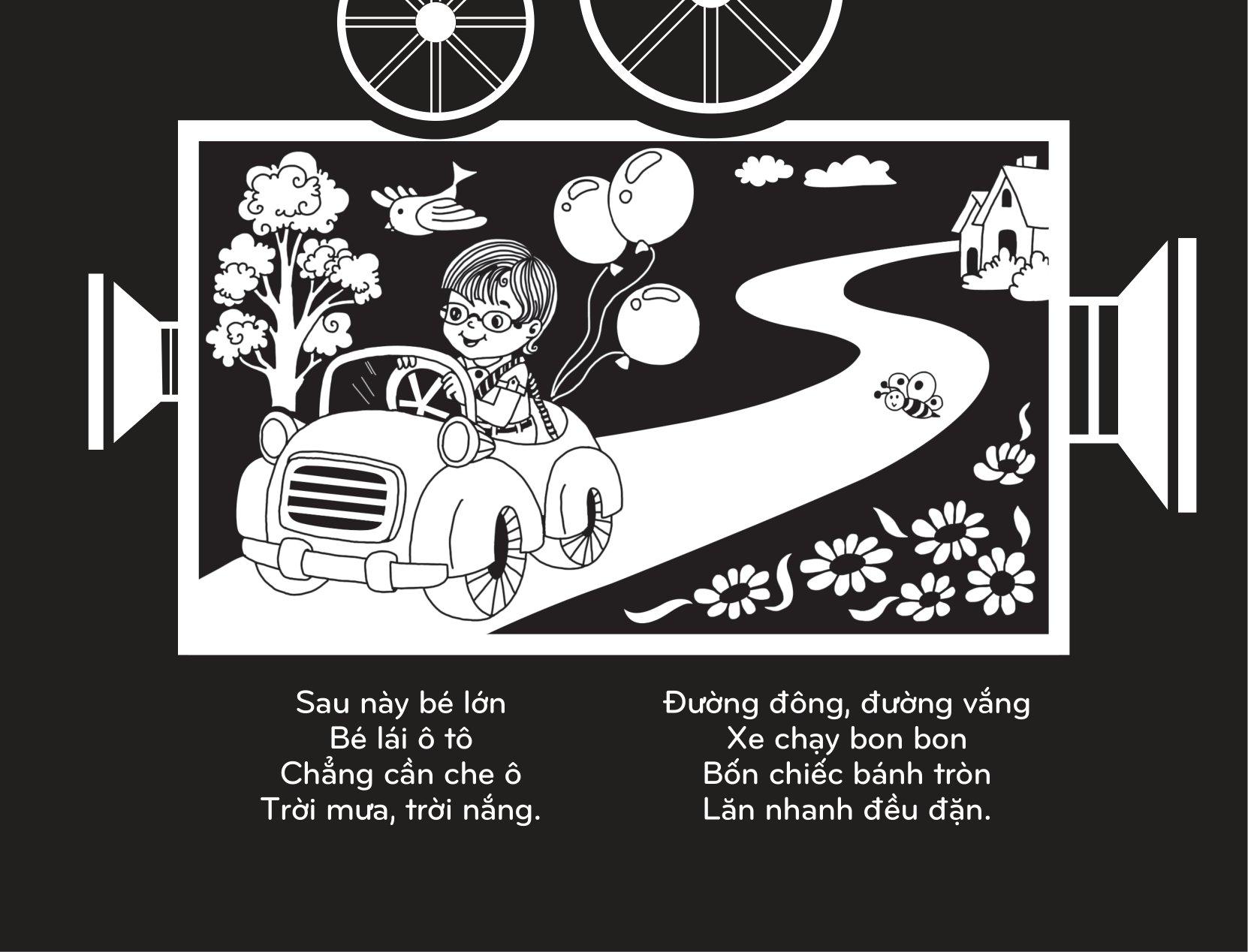 Sách Tương Tác - Sách Chiếu Bóng - Cinema Book - Rạp Chiếu Phim Trong Sách - Phương Tiện Giao Thông song ngữ Việt - Anh, có chất liệu sáng tác từ dân gian Việt Nam, với kết cấu cải tiến giúp giải phóng đôi bàn tay để đem lại cho độc giả một trải nghiệm đọc tiện lợi nhất, được lấy cảm hứng từ chính “màn đêm” vẫn luôn ẩn chứa nhiều điều sợ hãi với con trẻ.
