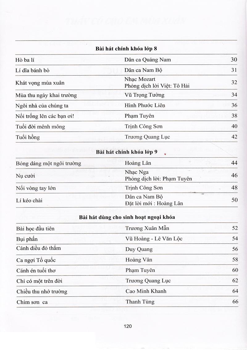 Tuyển tập bài hát hay dùng trong trường Trung học Cơ sở giới thiệu tới các em học sinh tất cả những gì gắn liền với cuộc sống của con người thể hiện qua âm nhạc: niềm vui và nỗi đau khổ, đấu tranh sinh tồn, niềm suy tư thầm kín, chí hướng và ước mơ hạnh phúc.