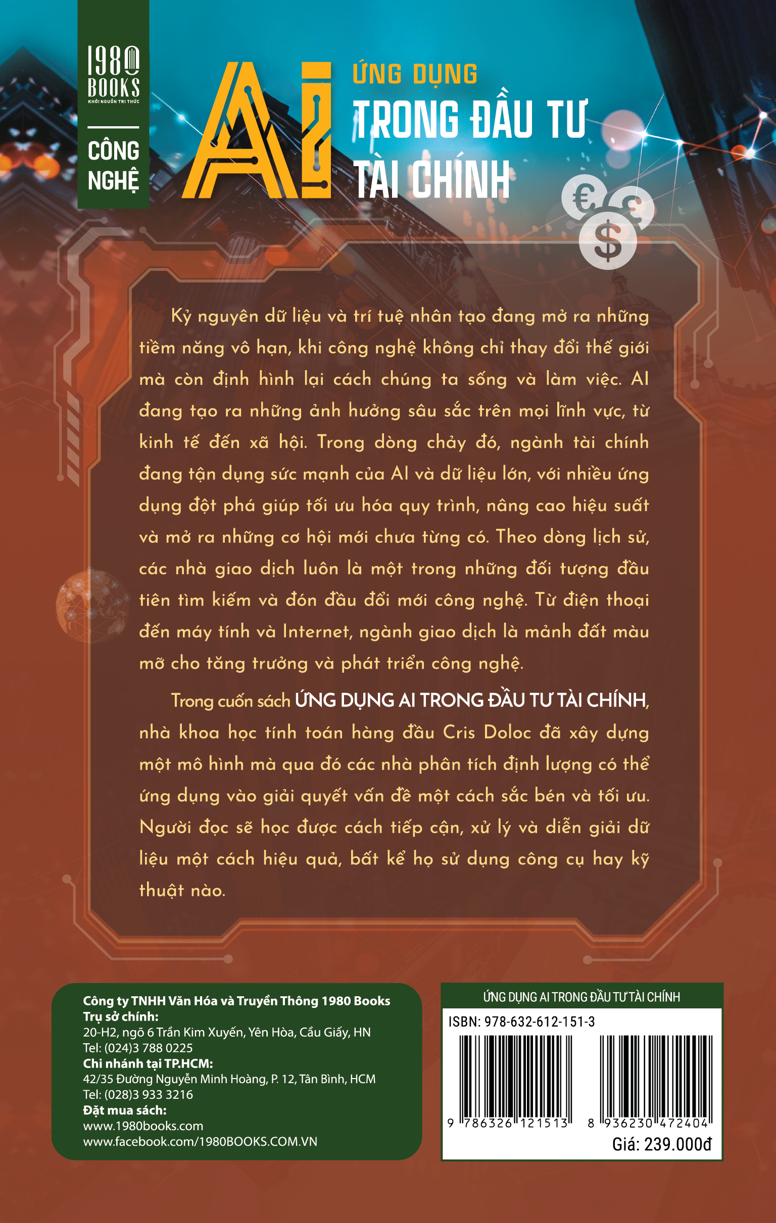 Cuốn sách " Ứng Dụng AI Trong Đầu Tư Tài Chính" là một tài liệu chuyên sâu và thực tiễn, dành cho những người đang hoạt động trong lĩnh vực tài chính, đặc biệt là những ai quan tâm đến việc ứng dụng trí tuệ nhân tạo (AI) và dữ liệu lớn (Big Data) trong phân tích và ra quyết định đầu tư.