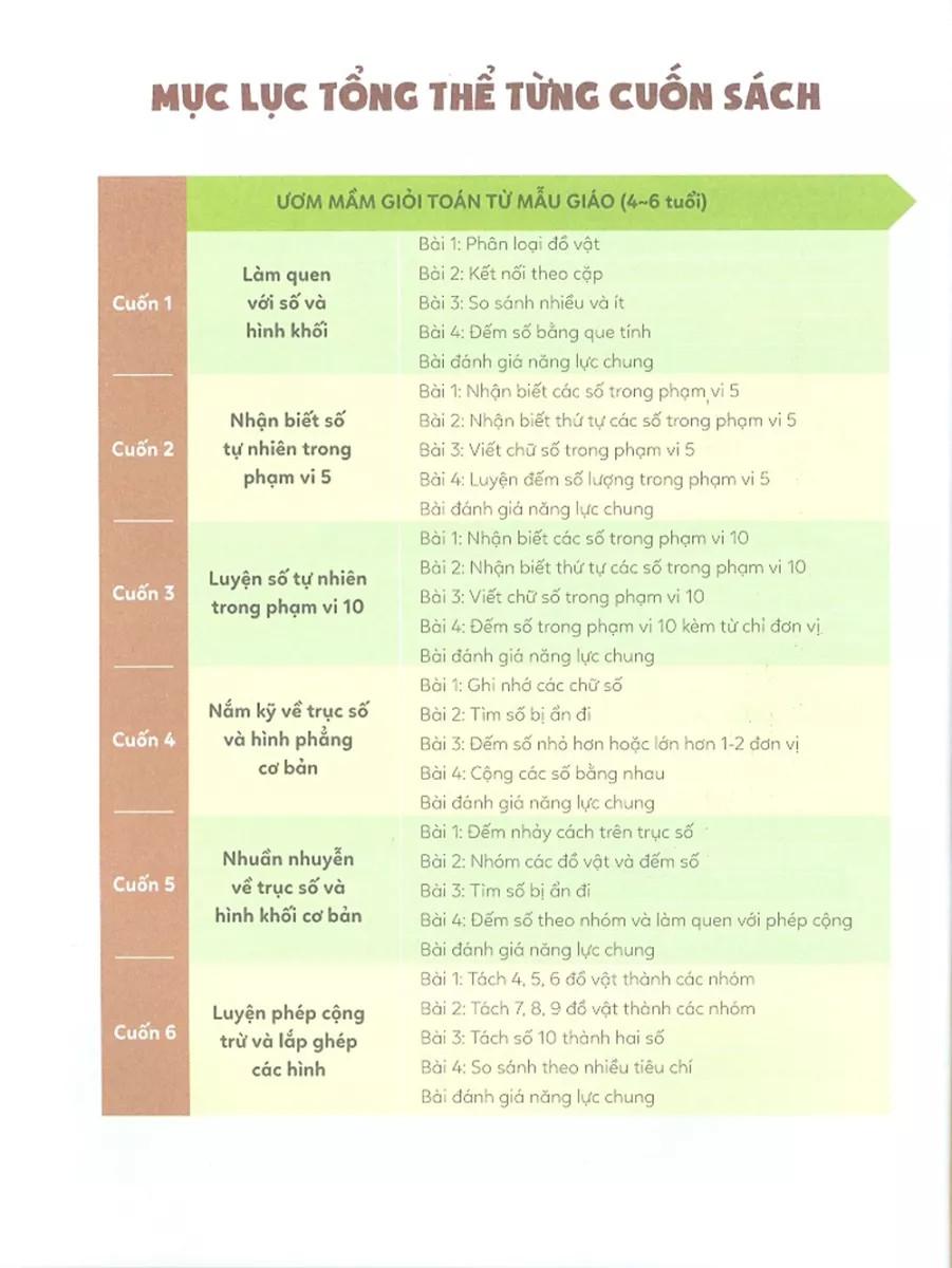Thông số kỹ thuật Sách Ươm Mầm Giỏi Toán Từ Mẫu Giáo - Mẫu Giáo 6- Cộng Trừ Và Lắp Ghép Hình Khối Thật Hay