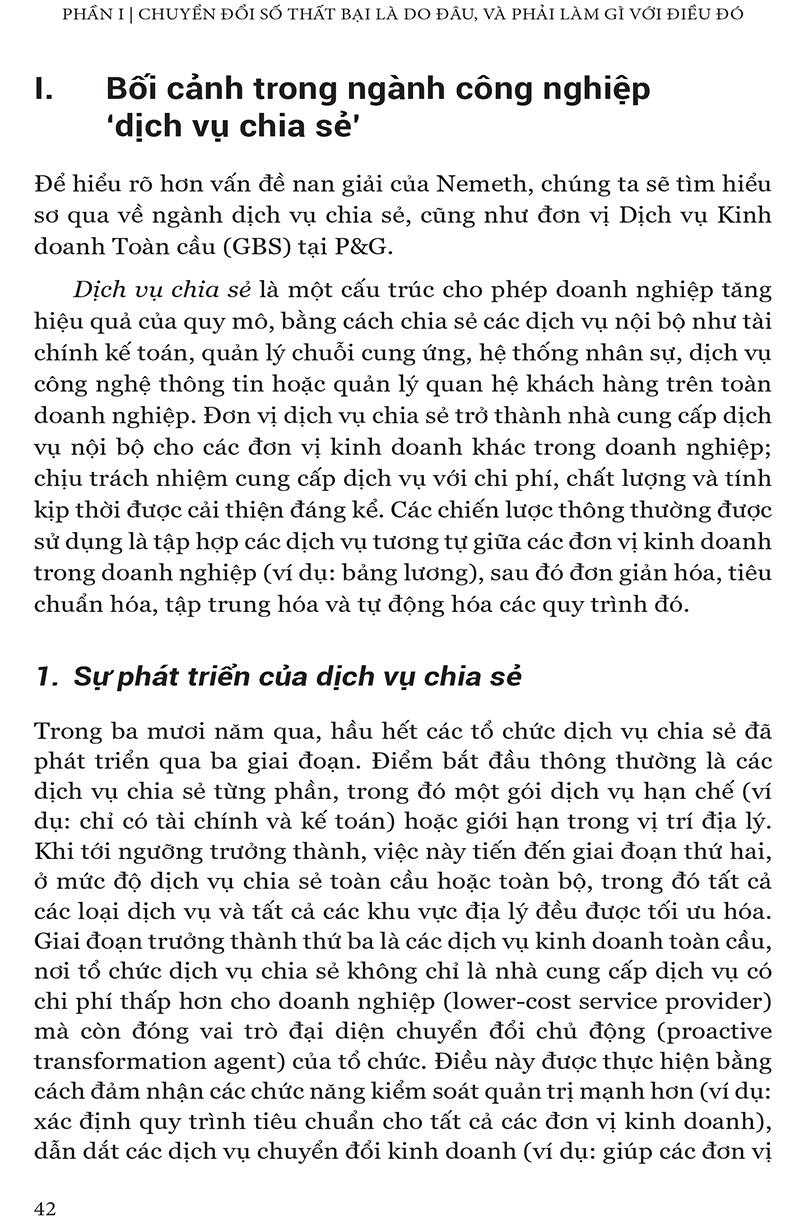 Phần I nói về bối cảnh chung, đầu tiên là sự mô tả về những tình huống khó xử mà Dịch vụ Kinh doanh Toàn cầu (GBS) của P&G đã phải đối mặt để thúc đẩy việc chuyển đổi số không ngừng, kế đến là việc giới thiệu mô hình 5 giai đoạn chuyển đổi số và các bước kiểm tra cụ thể để mang lại thành công.