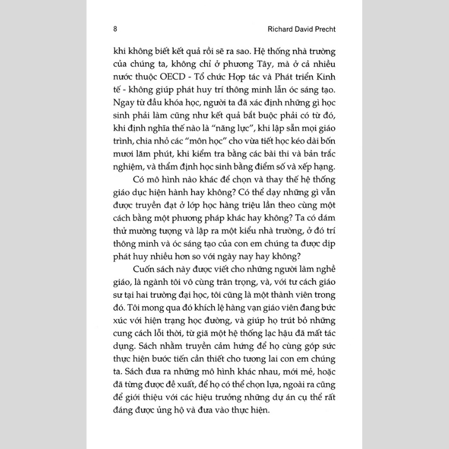 "Vì sao con tôi không thích đến trường? của Precht là một cơ xưởng chất đầy những luận cứ vững chãi có thể làm mới lại khoa sư phạm của chúng ta."