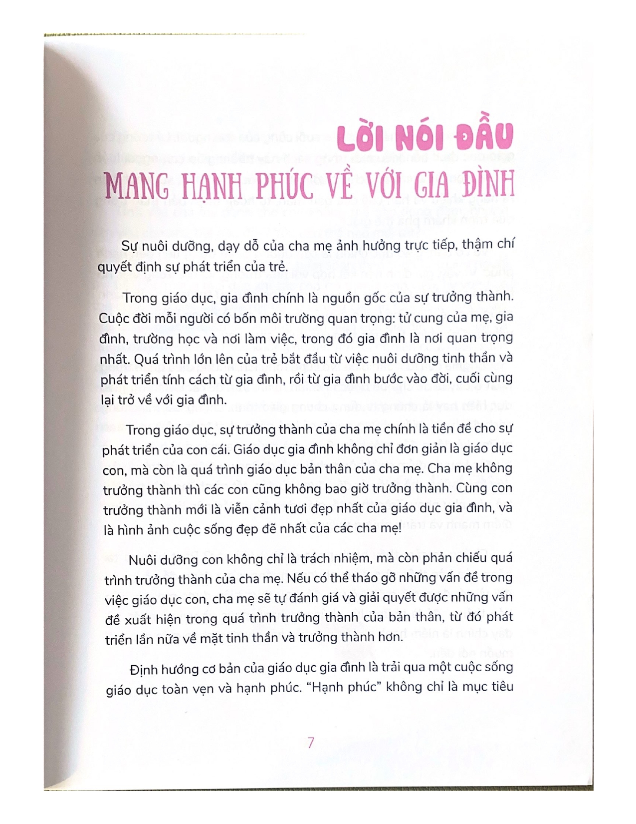 Trong giáo dục, gia đình chính là nguồn gốc của sự trưởng thành. Cuộc đời mỗi người có bốn môi trường quan trọng: tử cung của mẹ, gia đình, trường học và nơi làm việc, trong đó gia đình là nơi quan trọng nhất. Quá trình lớn lên của trẻ bắt đầu từ việc nuôi dưỡng tinh thần và phát triển tính cách từ gia đình, rồi từ gia đình bước vào đời, cuối cùng lại trở về với gia đình.