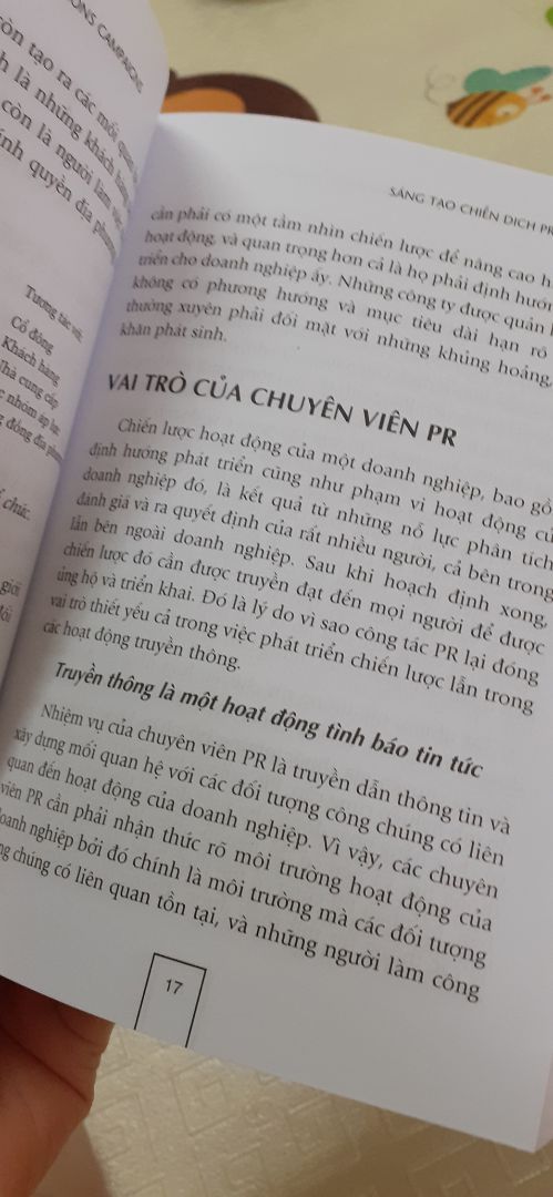 "Sáng tạo chiến dịch PR hiệu quả" là quyển sách được biên soạn cẩn thận nhằm cung cấp cho bạn những kiến thức và công cụ hữu ích nhất về kỹ năng hoạch định và quản lý chiến dịch PR. Thực tiễn và dễ đọc, quyển sách này giống như một quyển cẩm nang hướng dẫn từng buớc, phân tích qua nhiều lĩnh vực quan trọng như:- Vai trò của PR trong tổ chức- Khởi động quá trình hoạch định- Nghiên cứu và phân tích- Xác lập mục tiêu- Xác định đối tượng công chúng và thông điệp- Chiến lược và chiến thuật- Khung thời gian và nguồn lực- Đánh giá và rà soát .Sử dụng các kỹ thuật được trình bày trong cuốn sách này, các chuyên viên PR sẽ có thể kiểm soát các sự kiện thay vì bị chúng kiểm soát. Được học viện CIPR chứng thực, quyển sách này là một tài liệu hết sức thiết yếu cho sinh viên, chuyên viên hoặc những nhà quản lý đang tìm kiếm một tài liệu hướng dẫn tin cậy và hữu ích chi quá trình hoạch định và quản lý trong lĩnh vực của mình.
