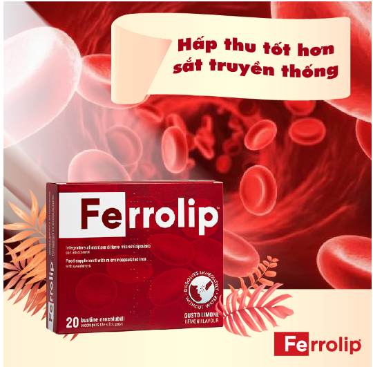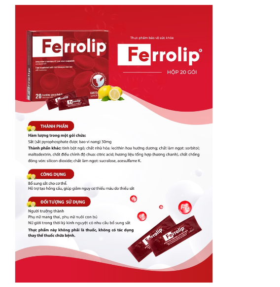 Thông số kỹ thuật Sắt Bột Buccal Tan Ngay Trong Miệng Ferrolip Hộp 20 gói giành cho người thiếu máu đặc biệt các mẹ sau sinh