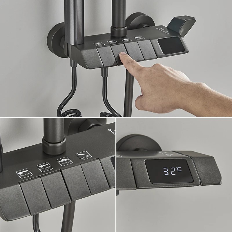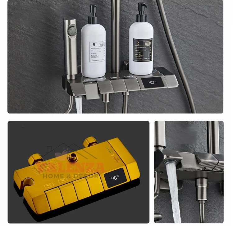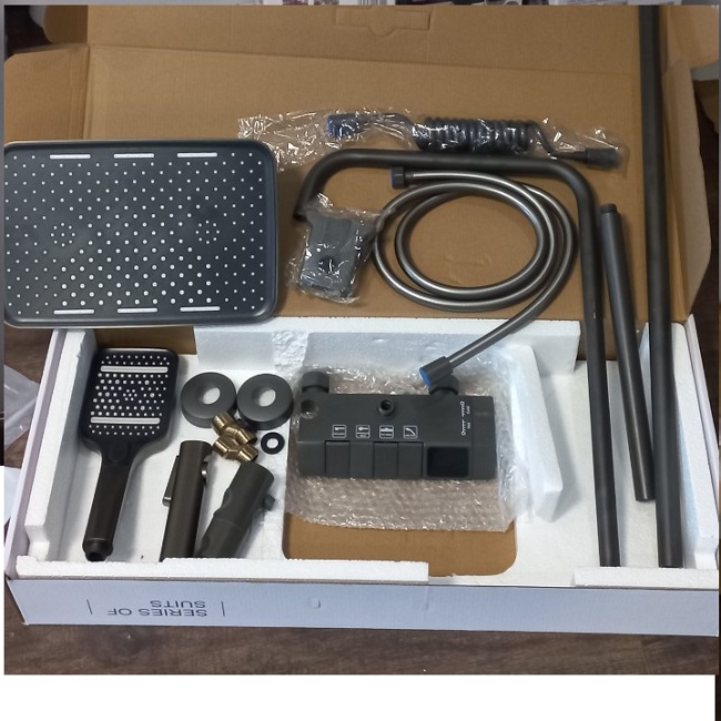 Thông tin sản phẩm: Bộ sen cây tắm phím đàn đồng mạ nano xám, điều chỉnh nhiệt độ tự động, tặng thêm ống nối dài cây sen