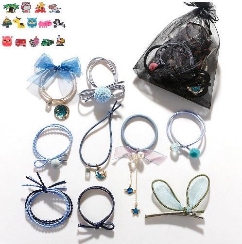 Thông số kỹ thuật Sét 9 dây buộc tóc và kẹp xinh xắn, có kèm túi lưới phong cách Hàn Quốc, giao màu ngẫu nhiên+ Tặng kèm hình dán