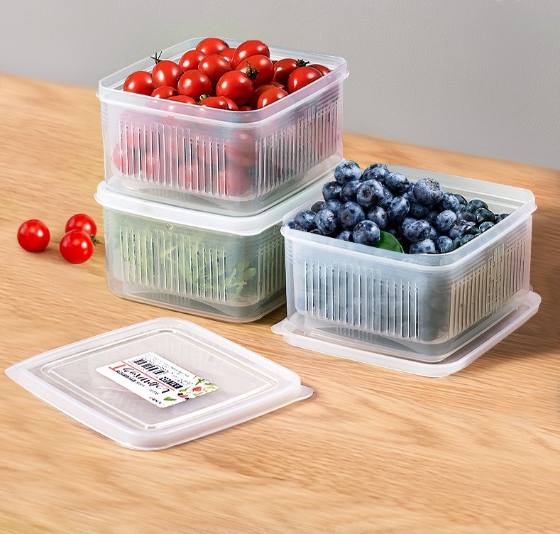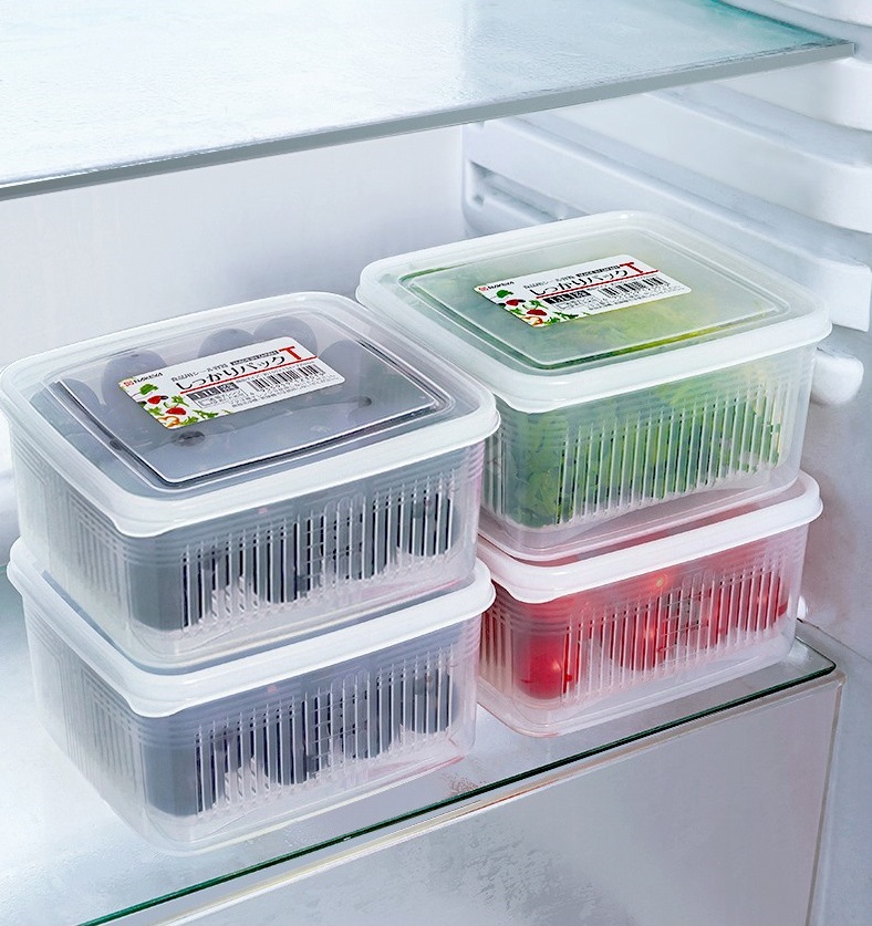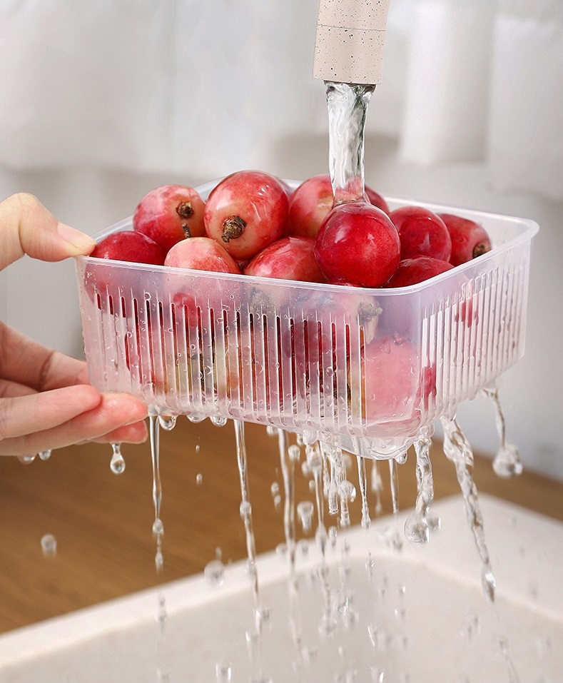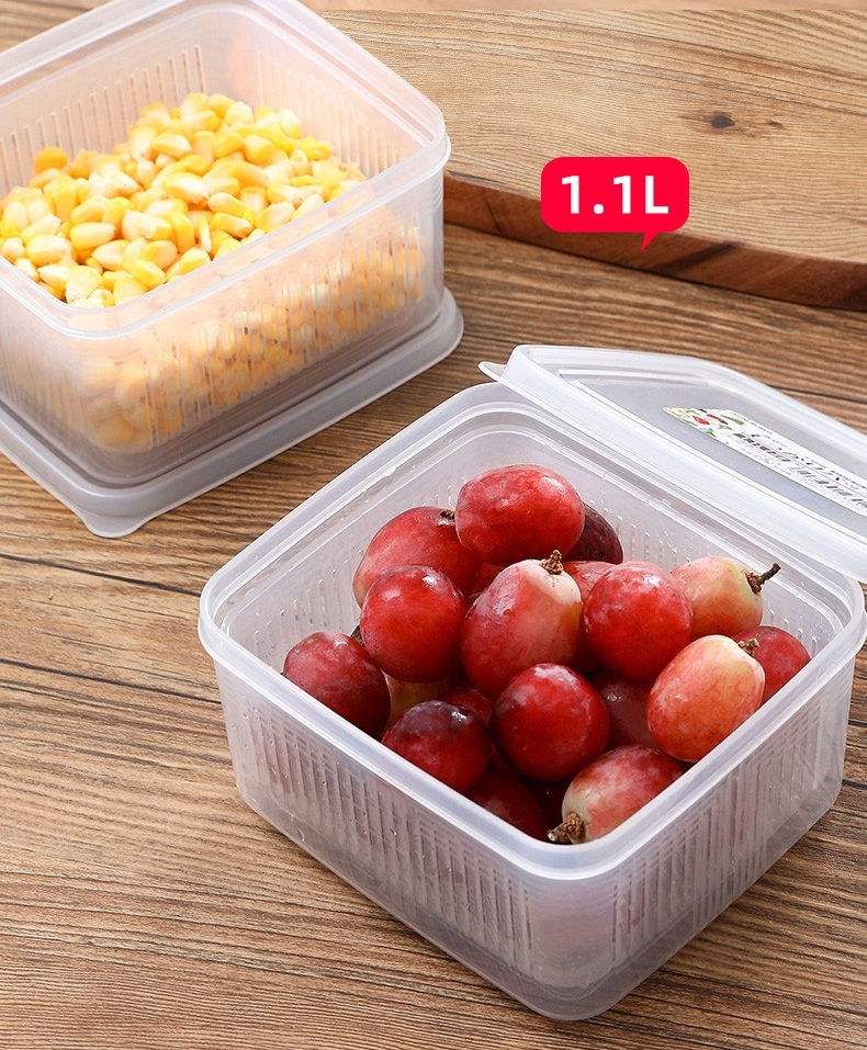 - Hộp có lớp giá lót bên trong giúp cho thực phẩm bảo quản được thoát nước, ráo nước nhanh chóng