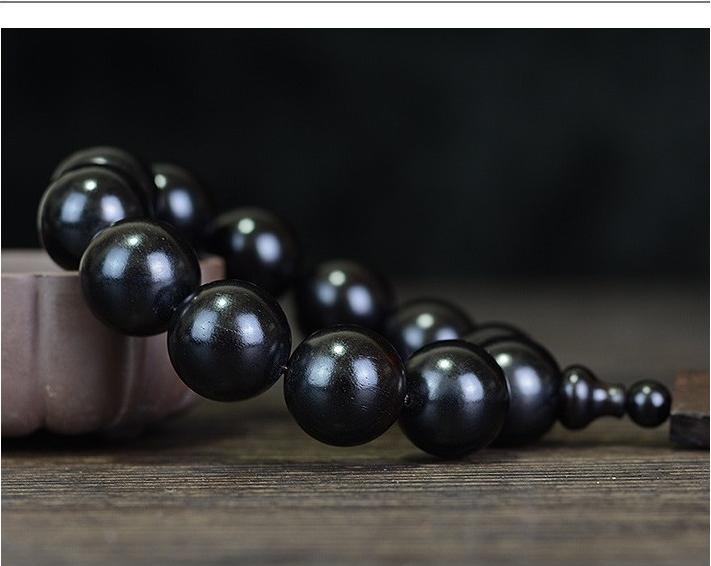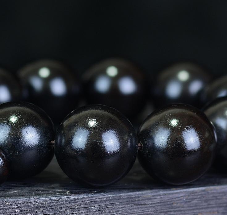 Vòng tay Tràng hạt gỗ Mun sừng cao cấp được chế tác từ những khối gỗ Mun đã trải qua hàng trăm năm sinh trưởng, được các nghệ nhân tạo tác một cách tỷ mỷ và trau chuốt kỹ lưỡng đạt đến sự hoàn mỹ nhất có thể.