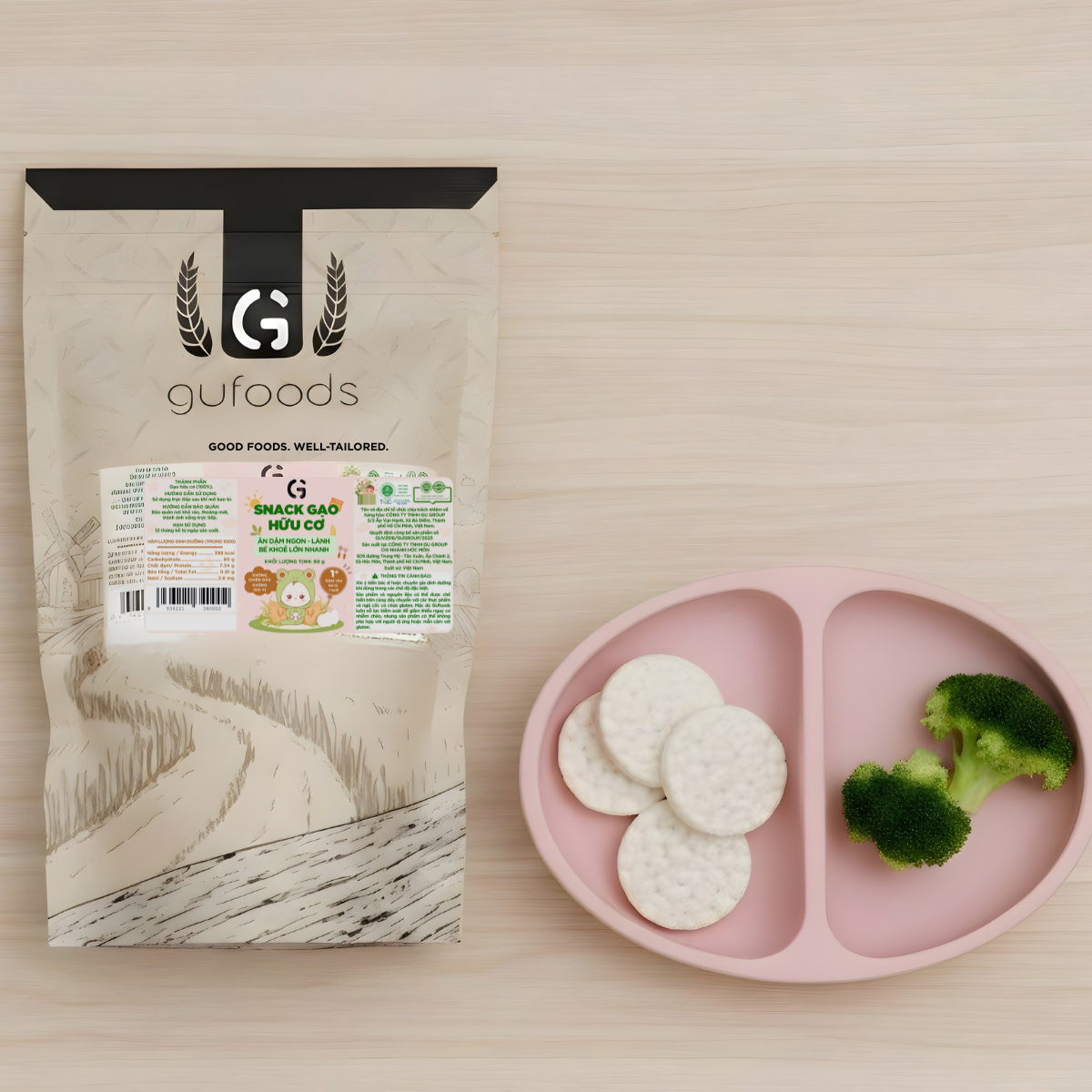 Nếu bạn thương đang không biết nên mua gì để bữa ăn của con thêm phần đa dạng nhưng vẫn an toàn và dinh dưỡng, thì thử ngay Snack gạo hữu cơ ăn dặm dành cho bé mới của GUfoods nhé. Được làm hoàn toàn từ gạo trắng hữu cơ, snack giòn rụm, miếng vừa ăn, lại có vị ngọt nhẹ nhàng từ gạo nên chắc chắn không chỉ khiến bé mê, mà nhiều khi còn làm chính bạn thương không thể dừng thưởng thức!