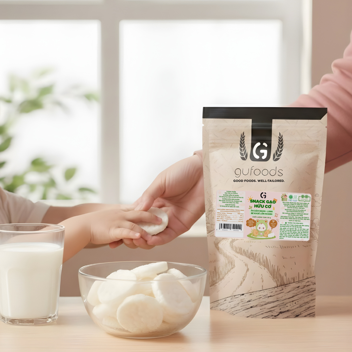 Gạo hữu cơ có phương pháp nuôi trồng khoa học, mang lại những dưỡng chất tốt để bé có thể hấp thụ tối ưu trong hành trình phát triển của mình. Một trong những nỗi lo của mẹ khi mua snack ăn dặm cho con đó là có an toàn và bảo đảm cho bé khi sử dụng không thì GU tin rằng snack gạo hữu cơ GUfoods sẽ giúp các mẹ an tâm khi cho bé ăn dù trong bất kỳ bữa ăn nào trong ngày vì thông tin rõ ràng và thành phần đảm bảo.