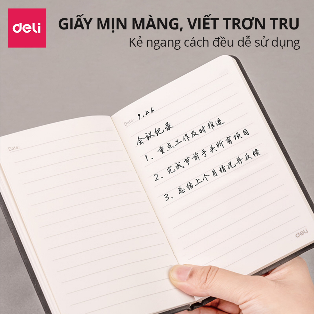 Thông số kỹ thuật Sổ Tay Bìa Da Kẻ Ngang Mini A6 Chống Nước, Cao Cấp Deli - 192 Trang 80gsm - Ghi Chép, Takenote, Làm Quà Tặng Nhật Kí
