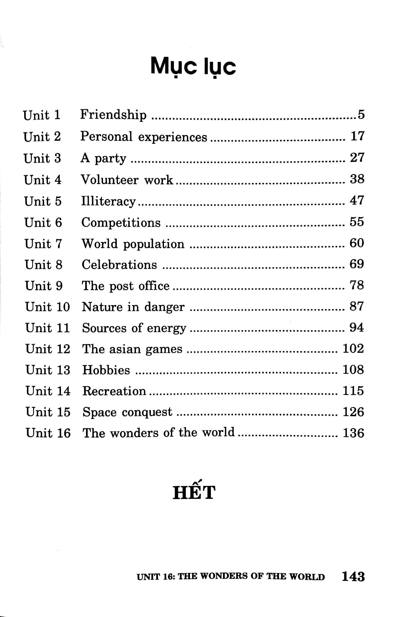 Mỗi đơn vị bài học gồm: Glossary (bảng từ vựng), Grammar (ngữ pháp), Sentence patterns (mẫu câu).