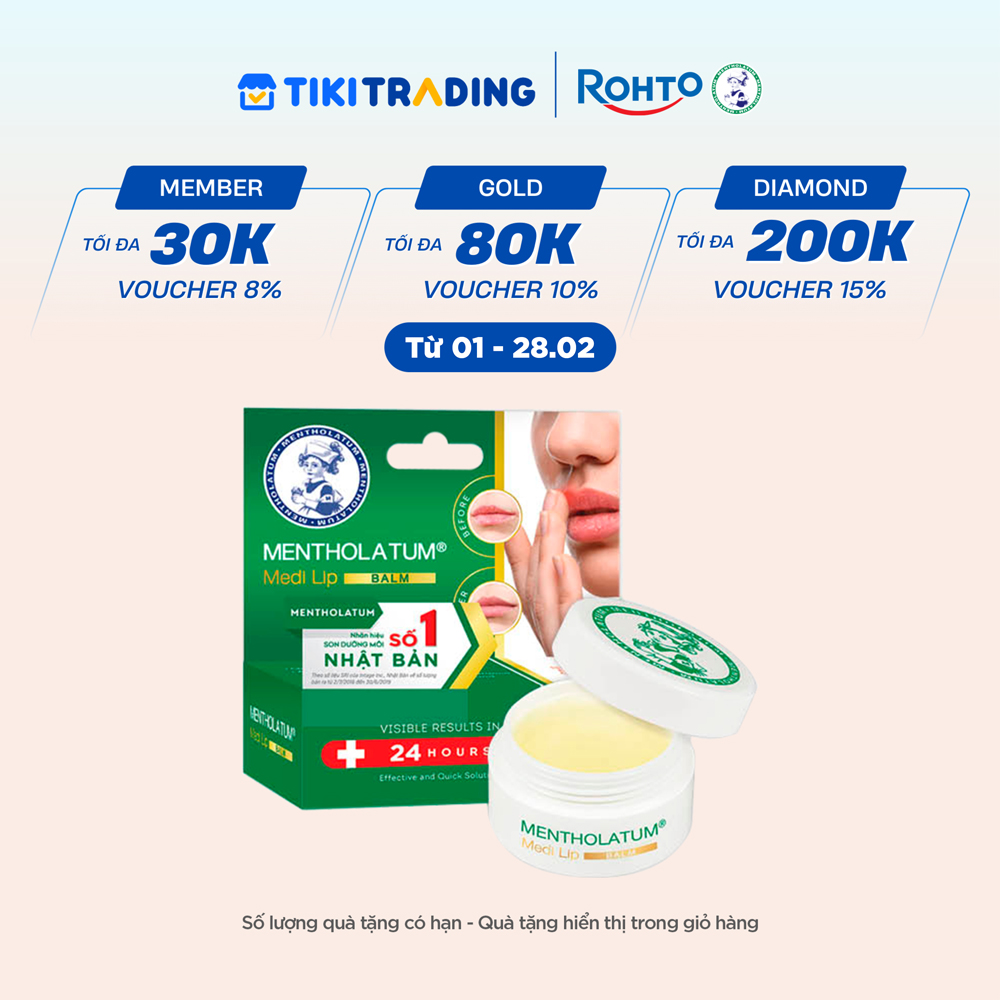 Son dưỡng môi dạng sáp chuyên biệt dành cho môi khô, nứt nẻ Mentholatum Medi Lip Balm là dòng son dưỡng môi đến từ thương hiệu Mentholatum của Nhật Bản, cải thiện khô nứt, dưỡng môi ẩm mịn nhanh chóng, bảo vệ và hỗ trợ phục hồi môi khô khỏi tác động của thời tiết lạnh, khô hanh, thường xuyên tô son và môi khô cơ địa. Hiệu quả rõ rệt trong 24 giờ.
