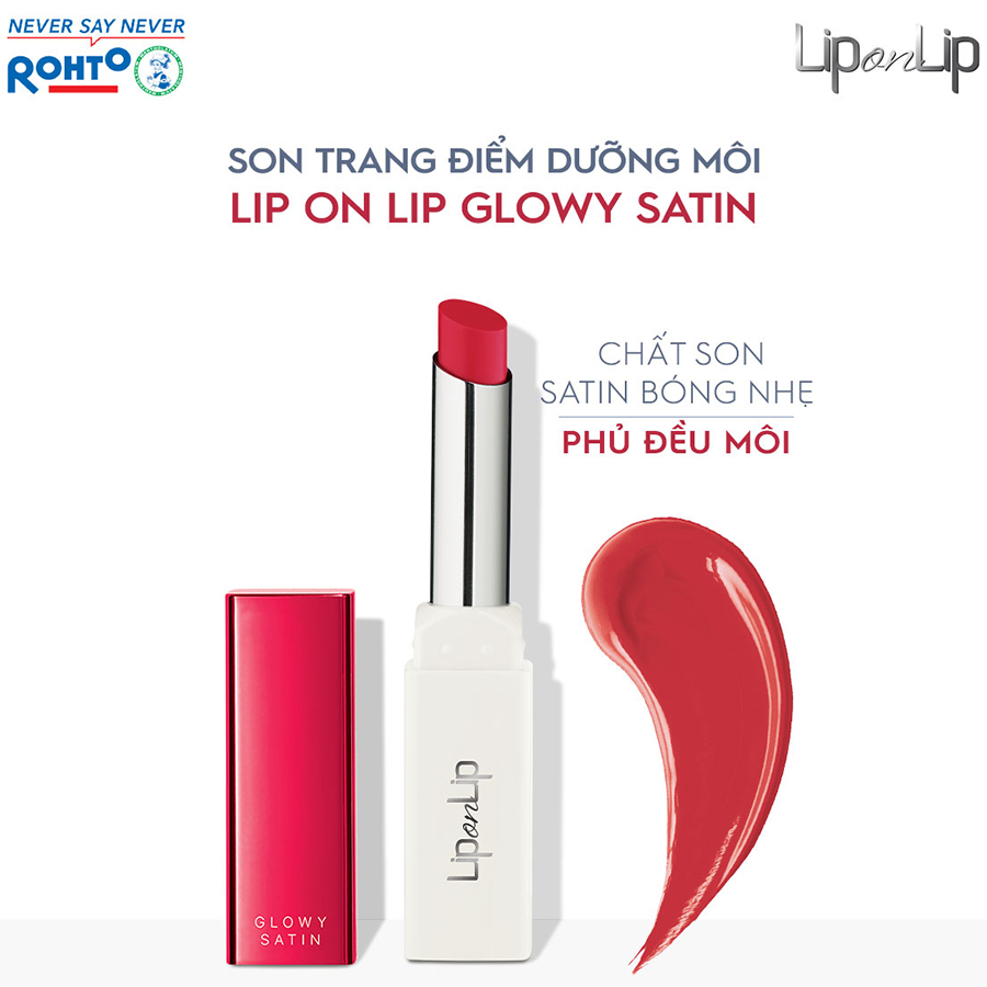 Son thỏi dưỡng môi trang điểm Lip On Lip Glowy Satin có chất son satin mềm mịn, lâu phai