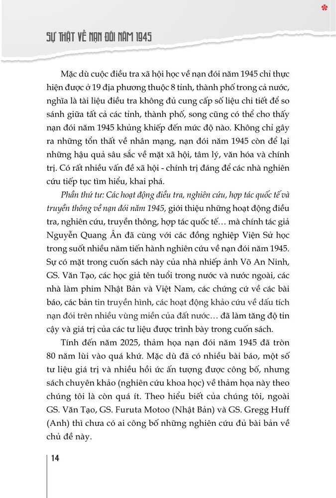 Phần thứ tư: Các hoạt động điều tra, nghiên cứu, hợp tác quốc tế và truyền thông về nạn đói năm 1945.