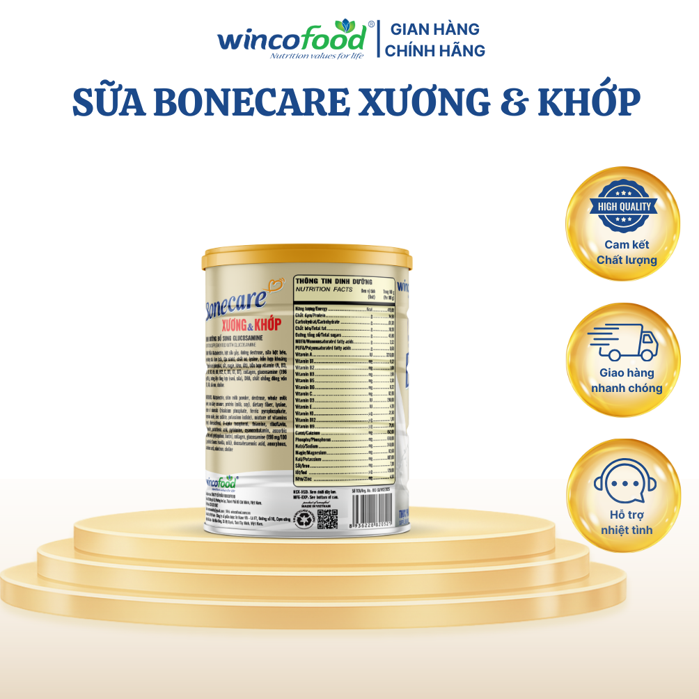 Thông số kỹ thuật Sữa bột Bonecare dưỡng chất cho xương và khớp dành cho người từ 30 tuổi trở lên phòng ngừa đau xương khớp, viêm khớp, đặc biệt là người bệnh xương và khớp