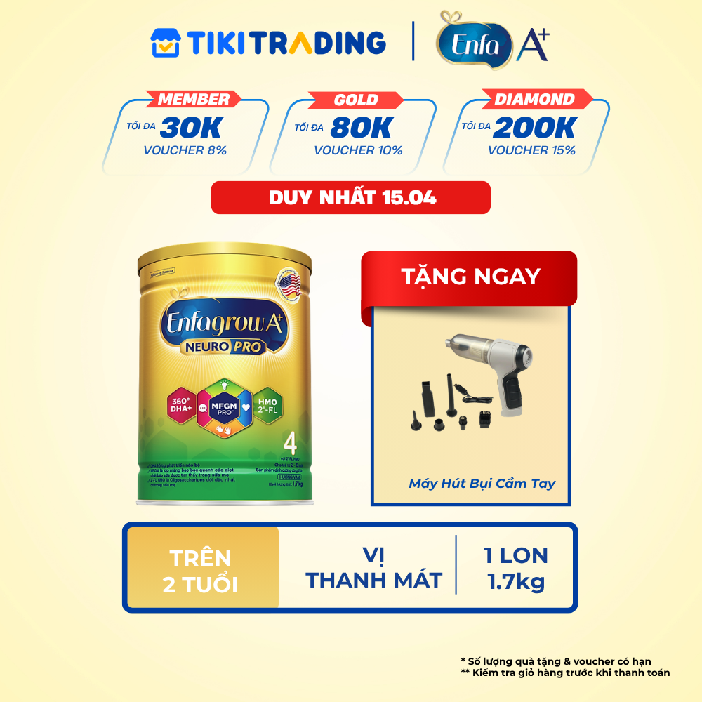 Thông số kỹ thuật Sữa bột Enfagrow A+ Neuropro 4 1.7kg với DHA giúp phát triển não bộ cho trẻ từ 2–6 tuổi