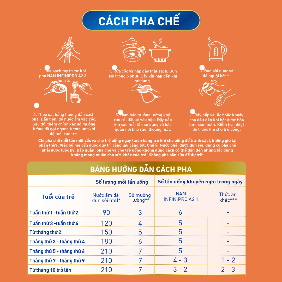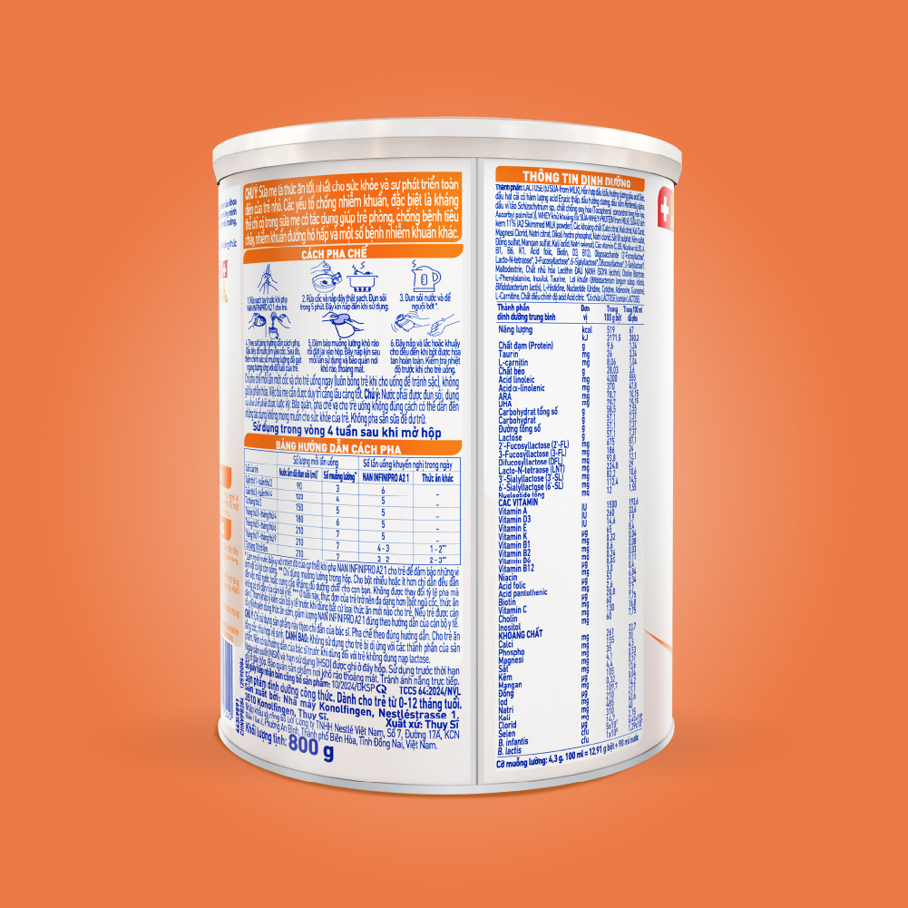 Thông số kỹ thuật Sữa bột Nestlé NAN INFINIPRO A2 1 với công thức đầu tiên chứa đạm A2, 6HMO & Lợi khuẩn kép nhập khẩu Thụy Sĩ - Hộp 800g cho bé 0 - 12 tháng