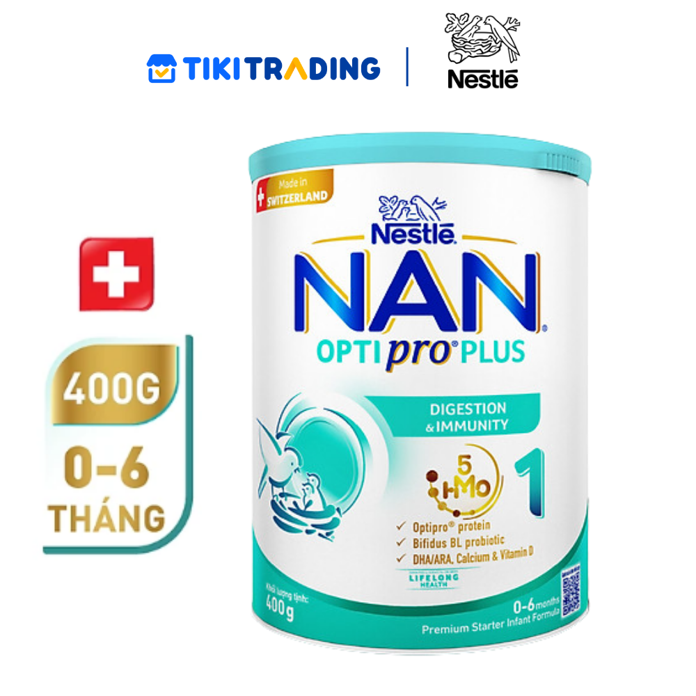 Sản phẩm dinh dưỡng công thức Nestlé NAN OPTIPRO PLUS 1 400g Sản xuất tại Thụy Sĩ.