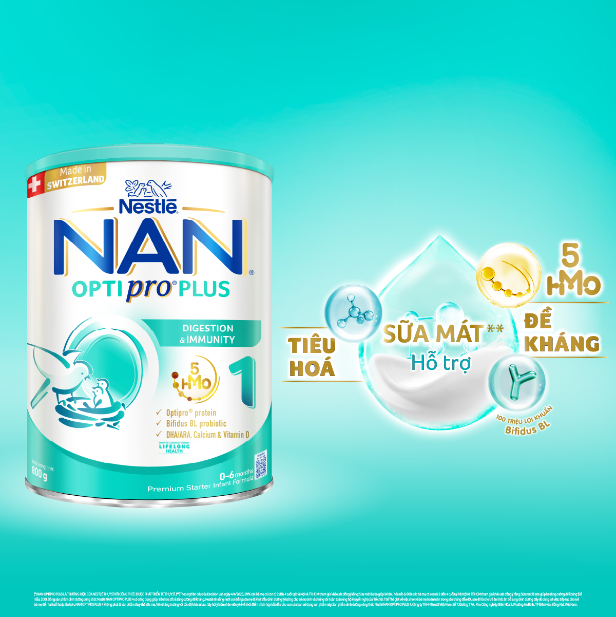 Thông số kỹ thuật Sữa bột Nestlé NAN OPTIPRO PLUS 1 800g/lon với 5HMO Sản Xuất Tại Thụy Sĩ (0 - 6 tháng)