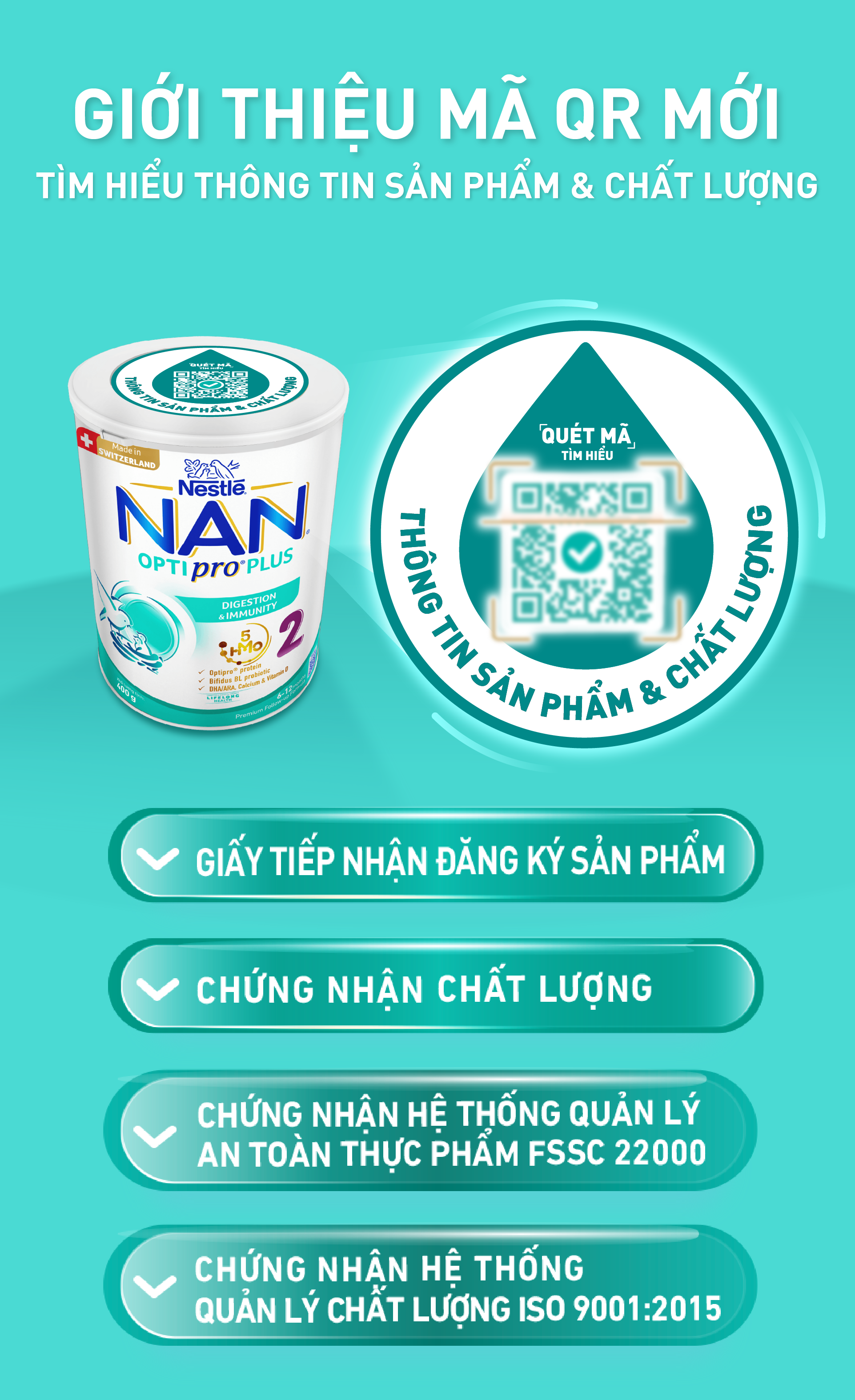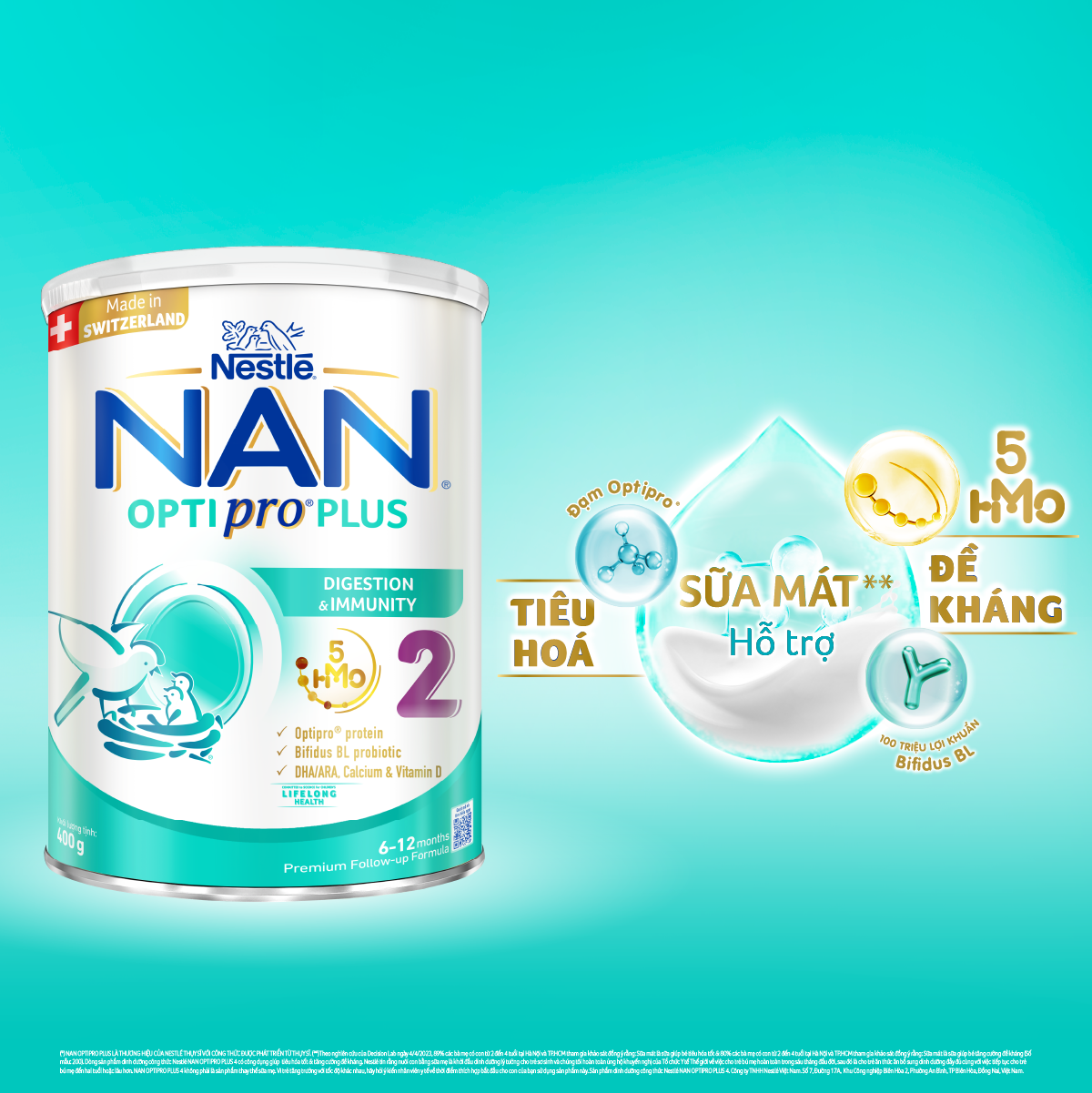 Thông số kỹ thuật Sữa bột Nestlé NAN OPTIPRO PLUS 2 400g/lon với 5HMO Sản Xuất Tại Thụy Sĩ (6-12 tháng)