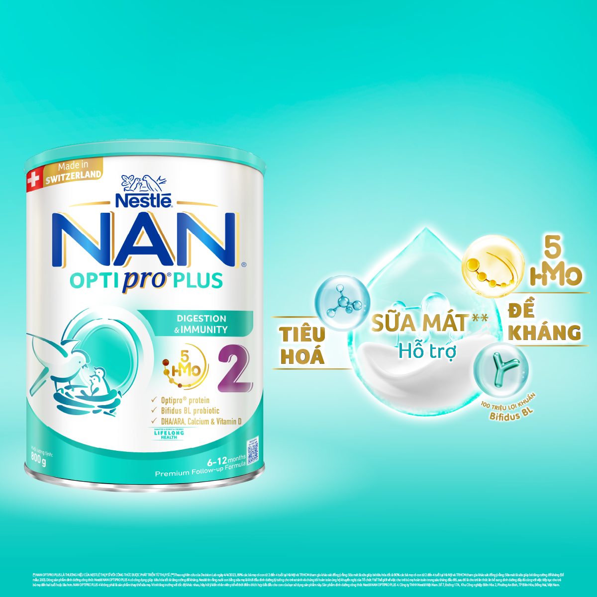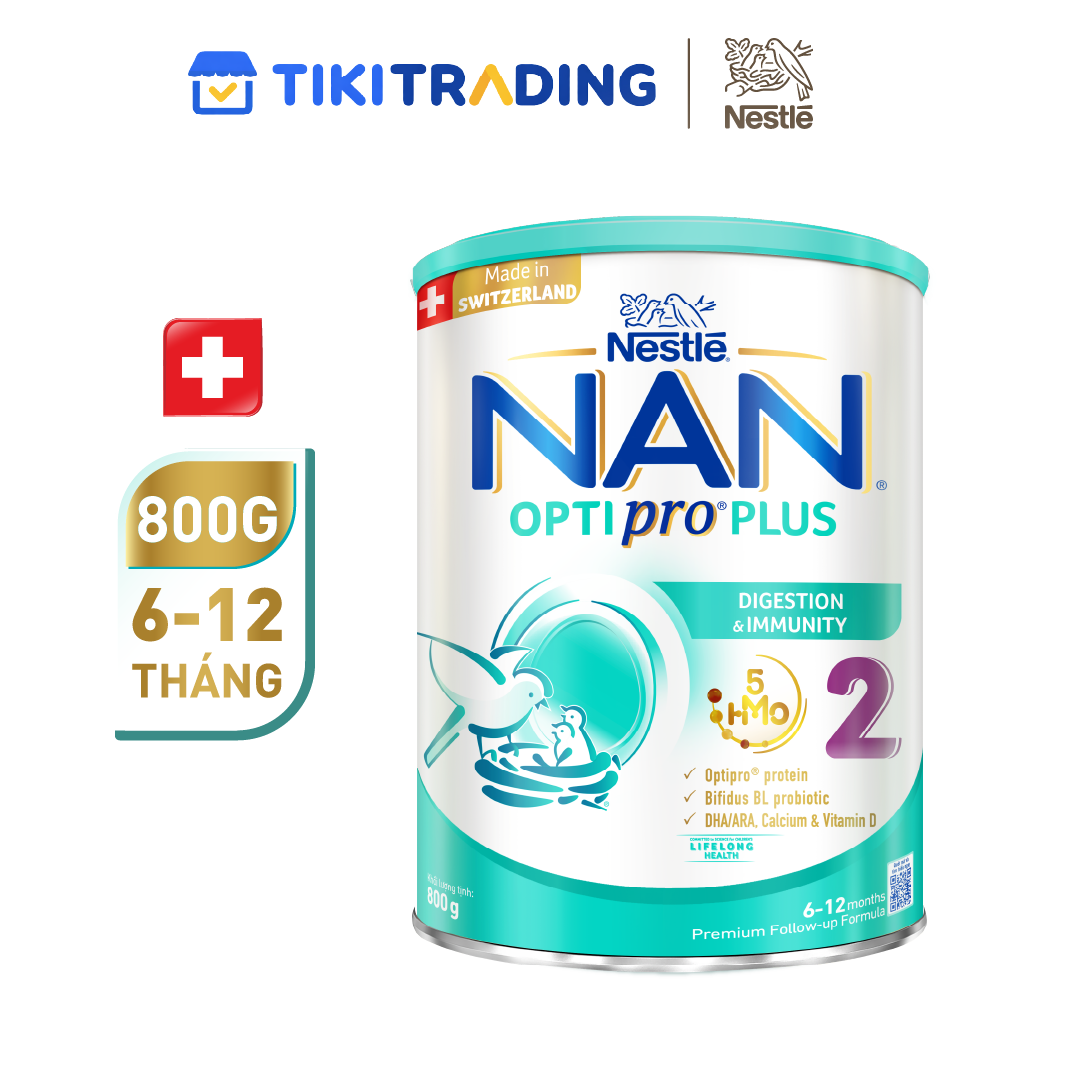 Thông số kỹ thuật Sữa bột Nestlé NAN OPTIPRO PLUS 2 800g/lon với 5HMO Sản Xuất Tại Thụy Sĩ (6 - 12 tháng)