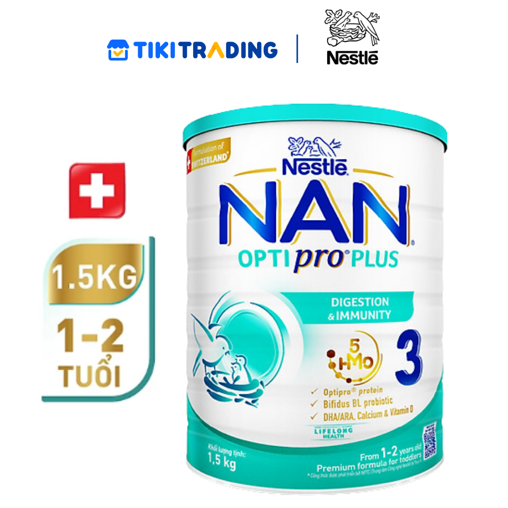 Thông số kỹ thuật Sữa bột Nestlé NAN OPTIPRO PLUS 3 1500g/lon với 5HMO (1-2 tuổi)