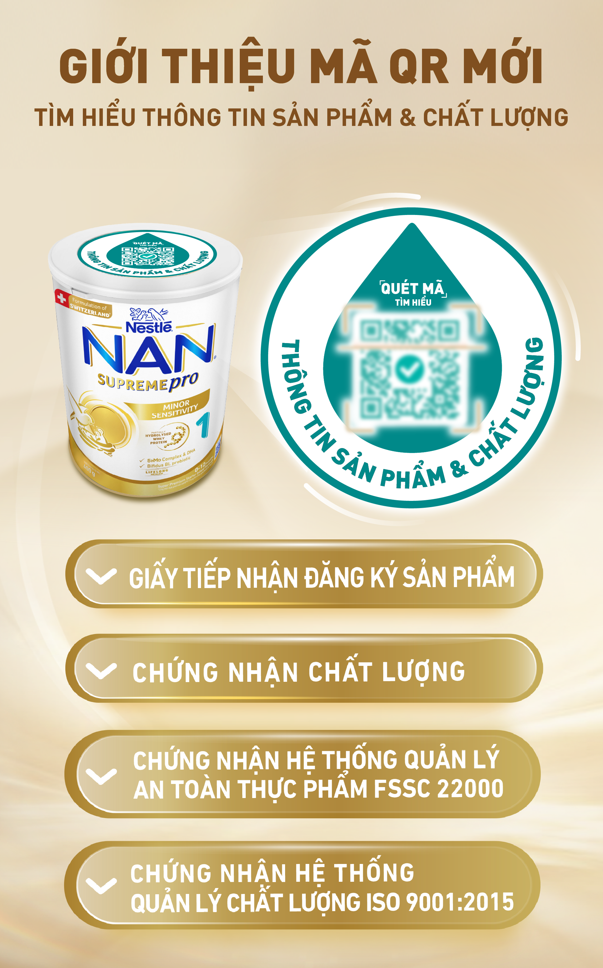 Nestlé NAN SUPREME 1 là sản phẩm dinh dưỡng công thức dành cho trẻ từ 0 đến 12 tháng tuổi, công thức cải tiến kết hợp Đạm Whey thủy phân một phần cùng bộ đôi 5HMO & Lợi khuẩn Bifidus BL giúp hỗ trợ cơ địa mẫn cảm.
