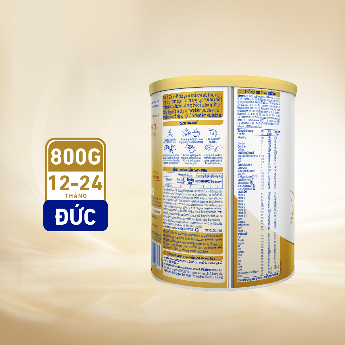 Thông số kỹ thuật Sữa bột Nestlé NAN SUPREMEPRO 2 800g nhập khẩu Đức với 5HMO & đạm Gentle Optipro ( Dành cho trẻ từ 12 - 24 tháng tuổi)