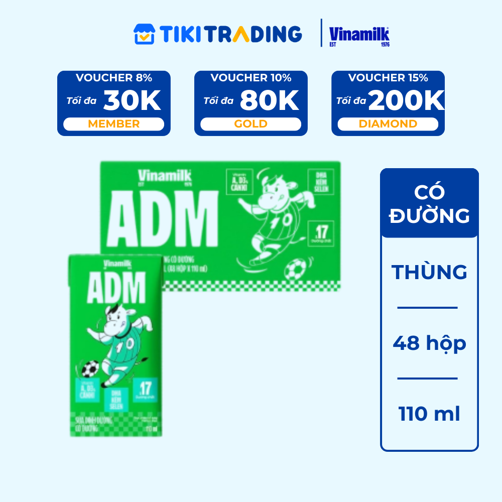 - Thùng 48 Hộp Sữa dinh dưỡng Vinamilk ADM Gold có đường (110ml) bổ sung vi chất ADM GOLD MỚI Giàu Canxi và Vitamin A, nay bổ sung thêm Omega 3 và các Vitamin B theo khuyến nghị của Tố chức an toàn thực phẩm Châu Âu (EFSA); giúp mắt sáng dáng cao, trau dồi trí nhớ.