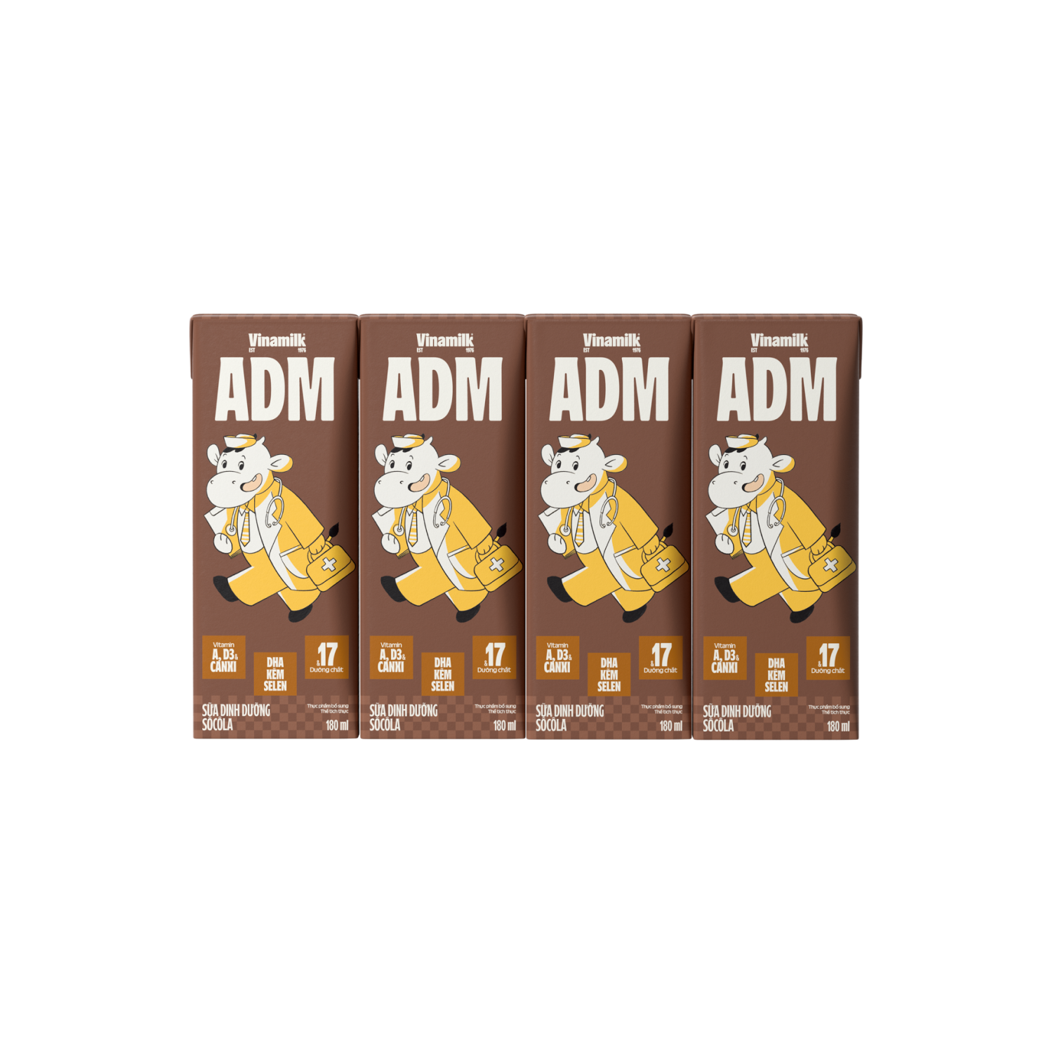 Tên Sản phẩm: Thực phẩm bổ sung Sữa tiệt trùng Vinamilk ADM Gold Sôcôla - Lốc 4 hộp x 180ml