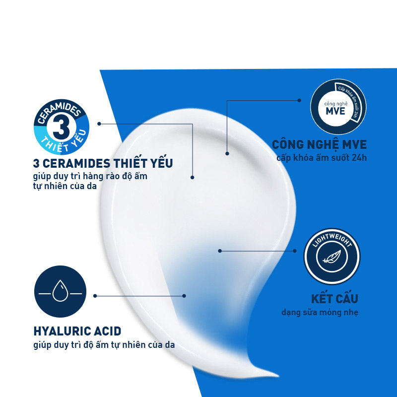 Với sự kết hợp của 3 ceramides thiết yếu và hyaluronic acid, sữa dưỡng giúp duy trì độ ẩm và phục hồi lớp hàng rào bảo vệ cho da mặt và toàn thân