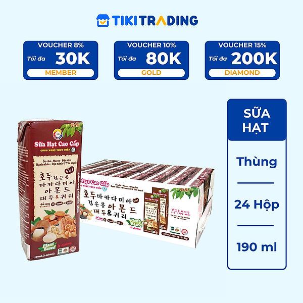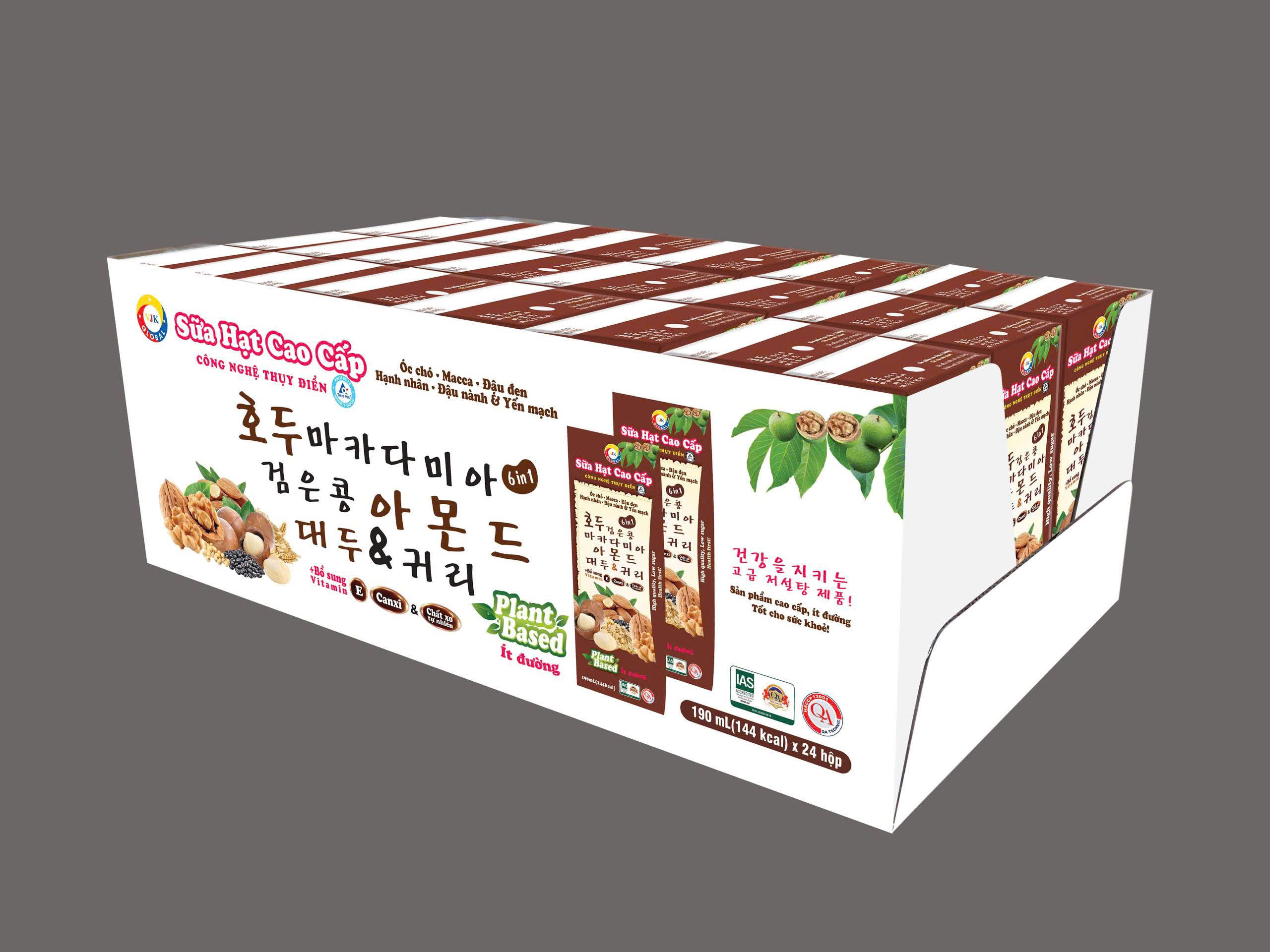 Thông số kỹ thuật Sữa hạt cao cấp Óc chó-Macca-Đậu đen-Hạnh nhân-Đậu nành & Yến mạch 190ml (24 hộp/thùng)