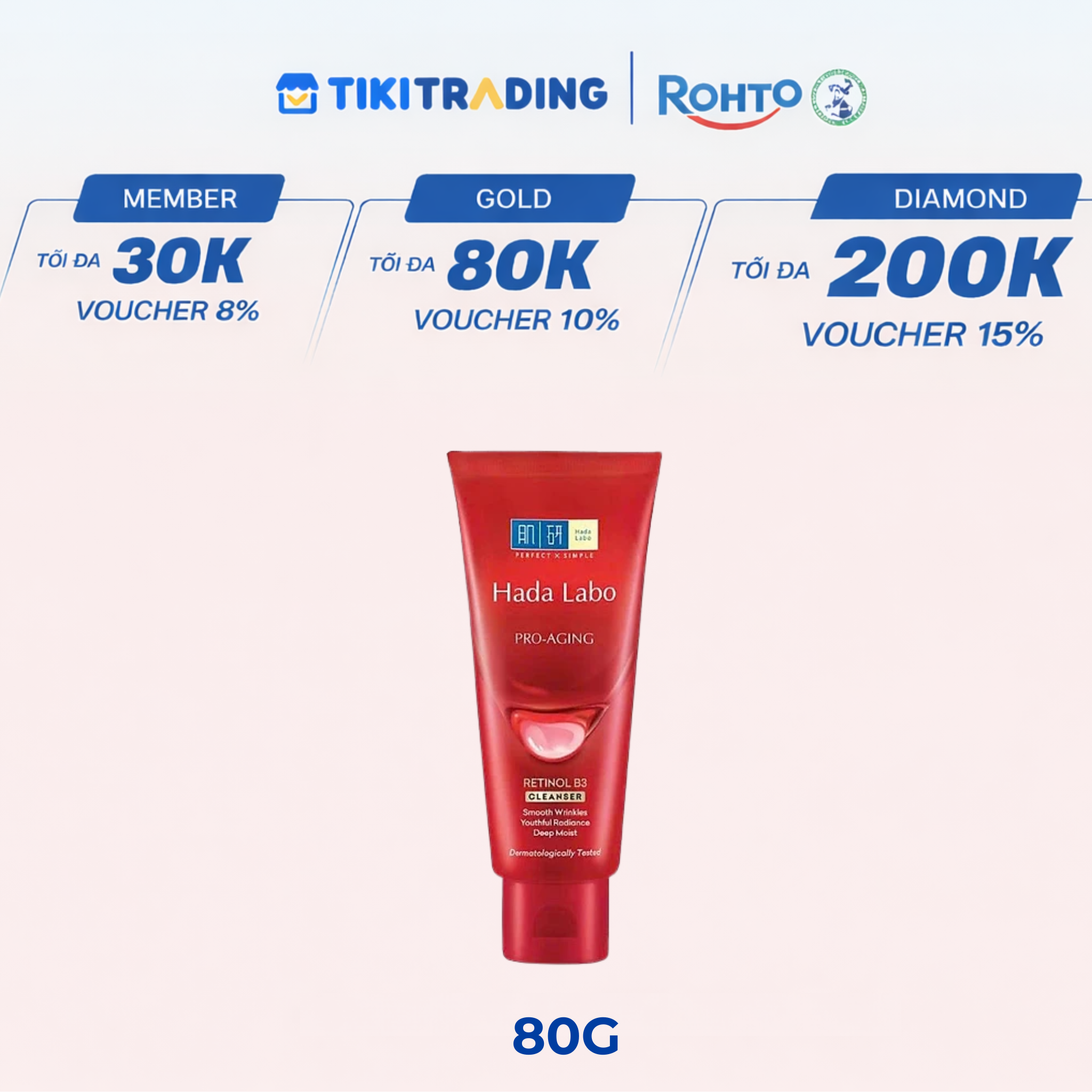 Thông số kỹ thuật Sữa rửa mặt cải thiện dấu hiệu lão hóa dạng kem Hada Labo Pro-Aging Retinol B3 Cleanser 80g