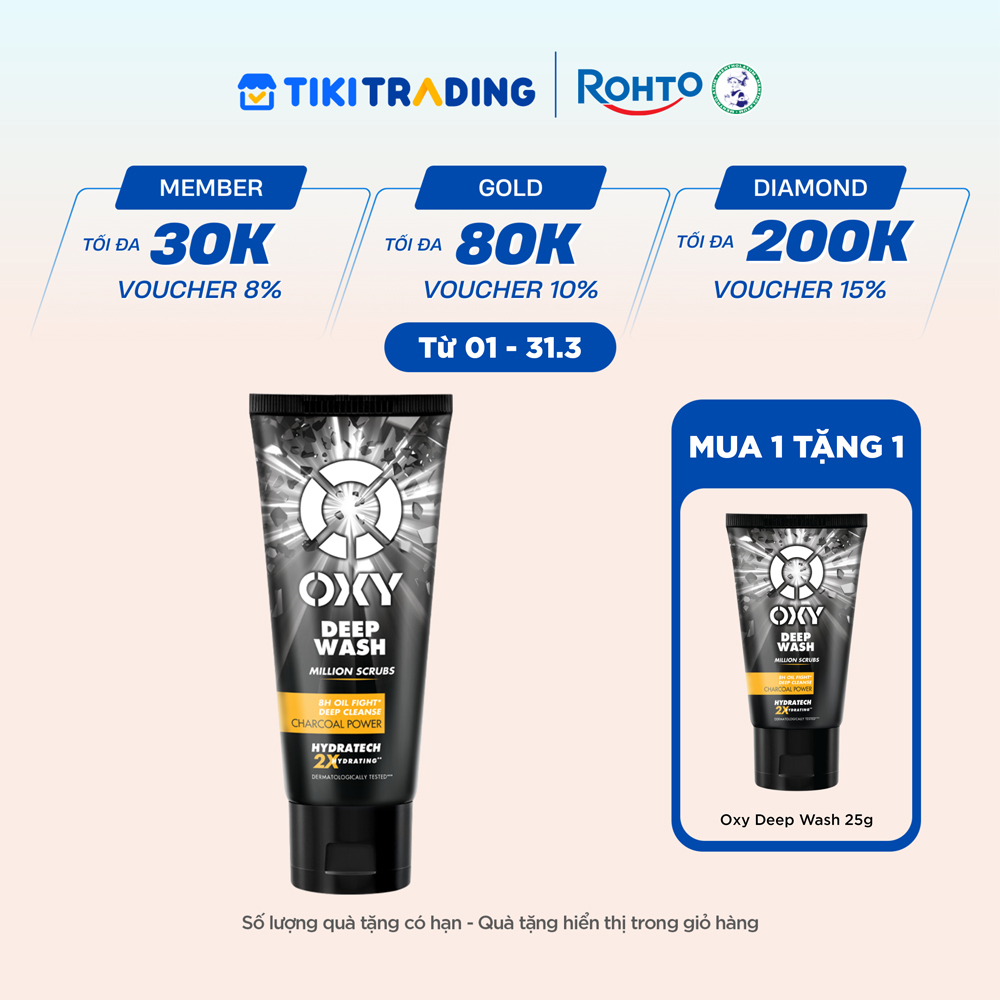 - Sữa rửa mặt cho nam Oxy Deep Wash Làm sạch bã nhờn, bụi bẩn. Giảm nhờn & bóng dầu đến 8 giờ.