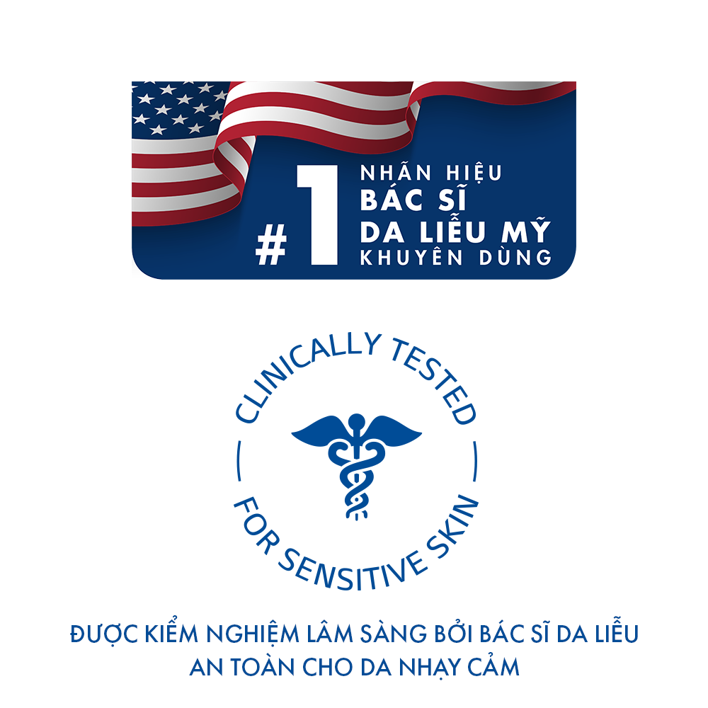 • Sản phẩm được kiểm nghiệm lâm sàng là an toàn với da nhạy cảm & được tin dùng bởi các bác sĩ da liễu