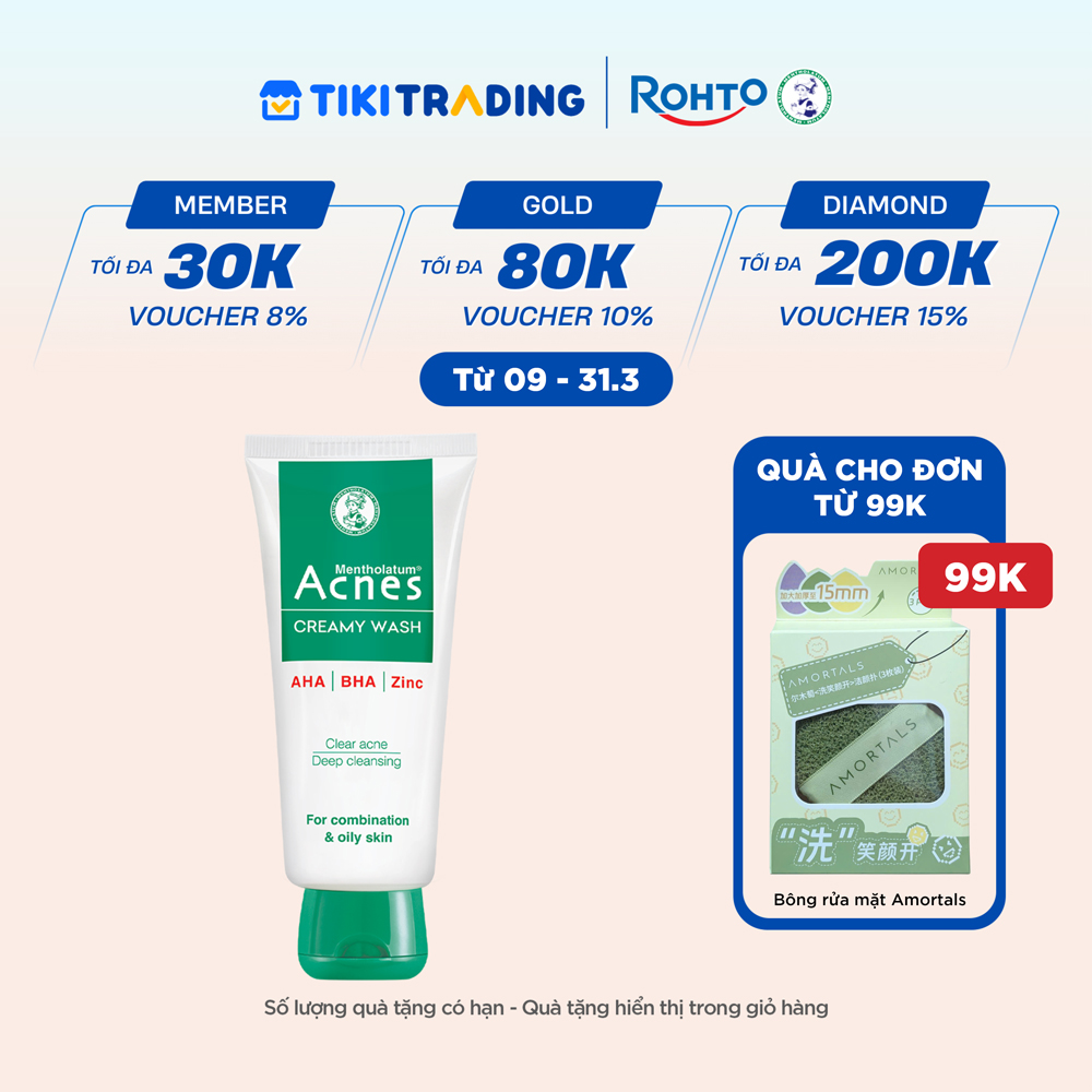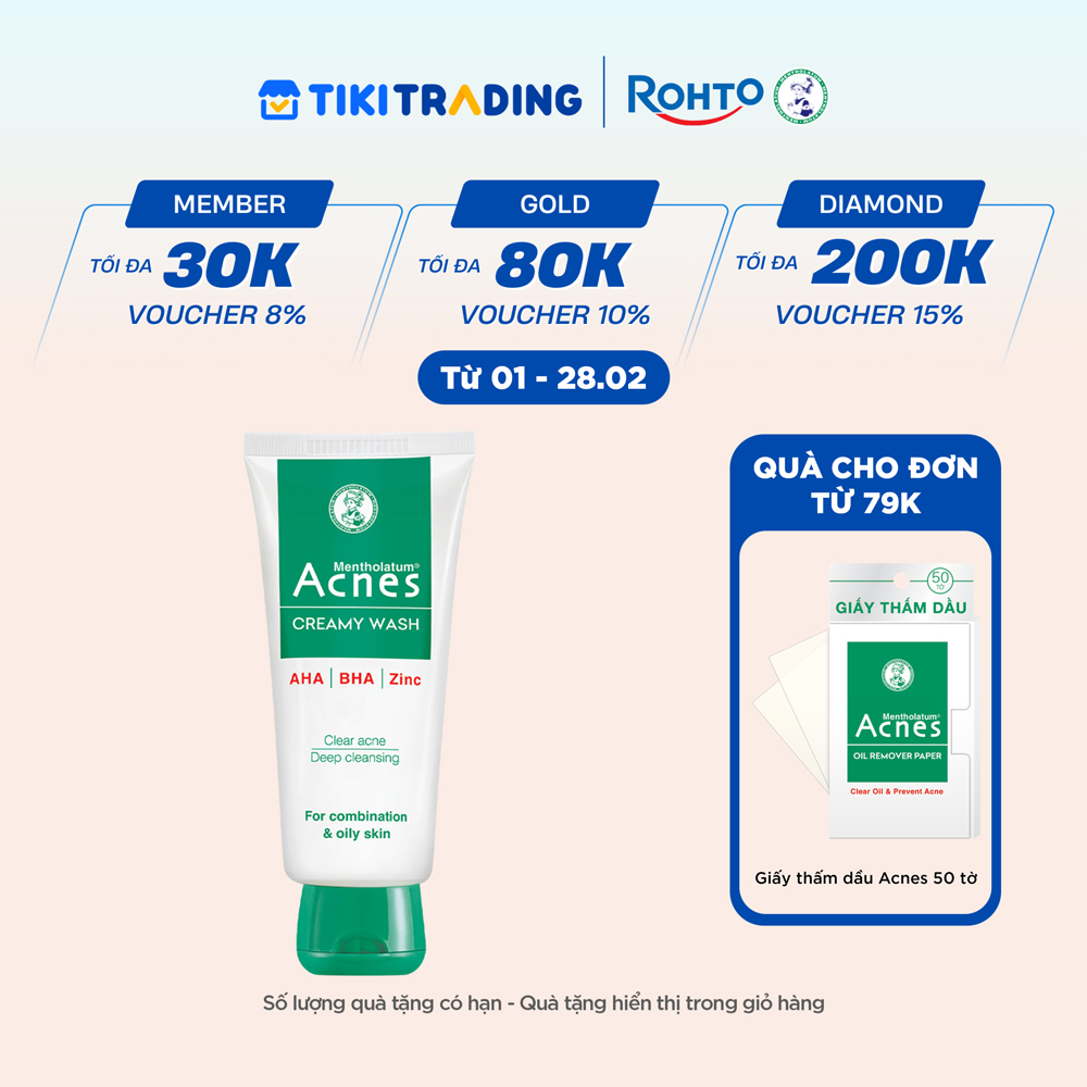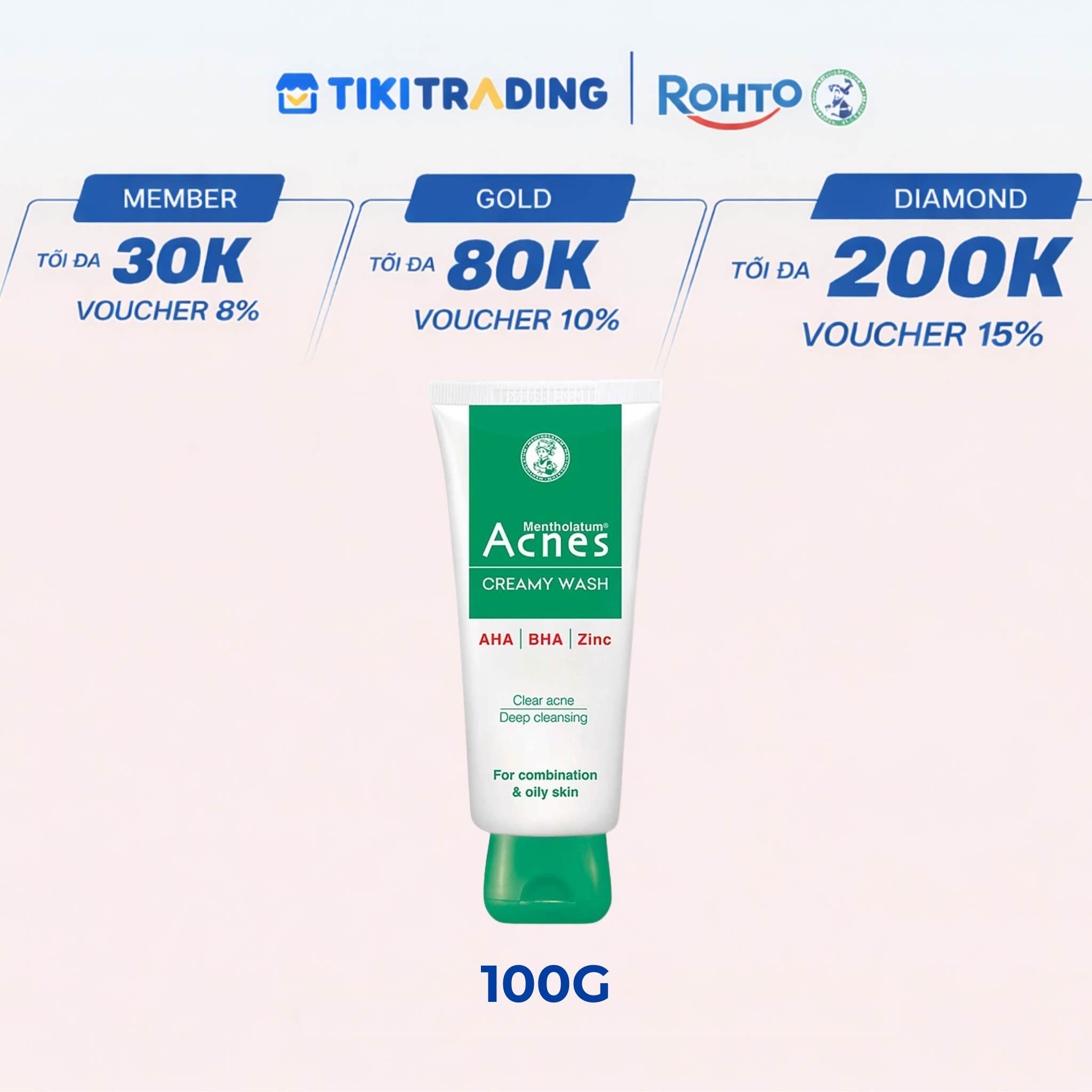 - Sữa Rửa Mặt Hàng Ngày Acnes Creamy Wash Ngăn Ngừa Mụn với công thức đột phá chứa phức hợp AHA & BHA giúp rửa sạch bã nhờn, tế bào chết, bụi bẩn tận sâu lỗ chân lông.